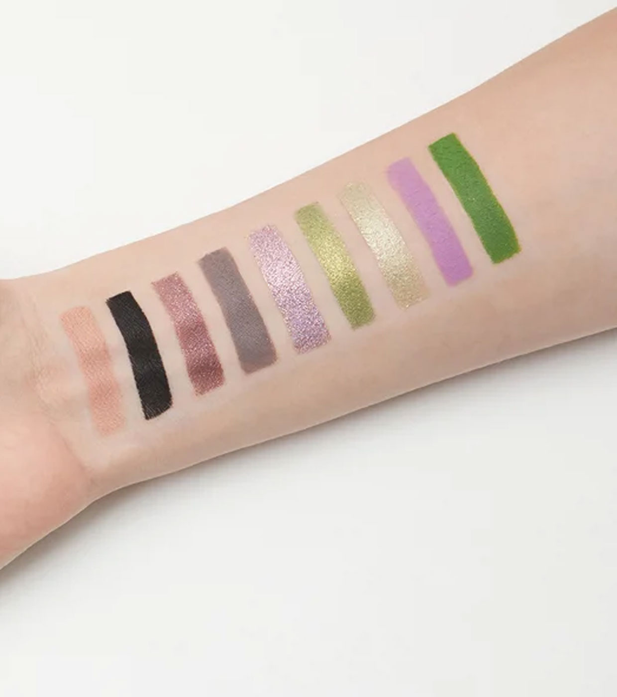 Esta paleta, enriquecida con una fórmula única de alta pigmentación desarrollada por nuestros maquilladores, permite una fácil aplicación y difuminado sin cuartearse ni perder intensidad a lo largo del día o la noche.