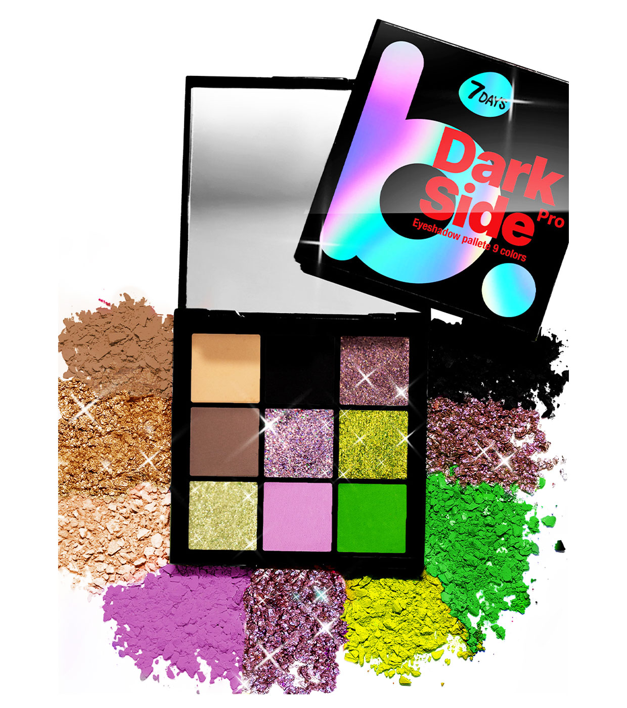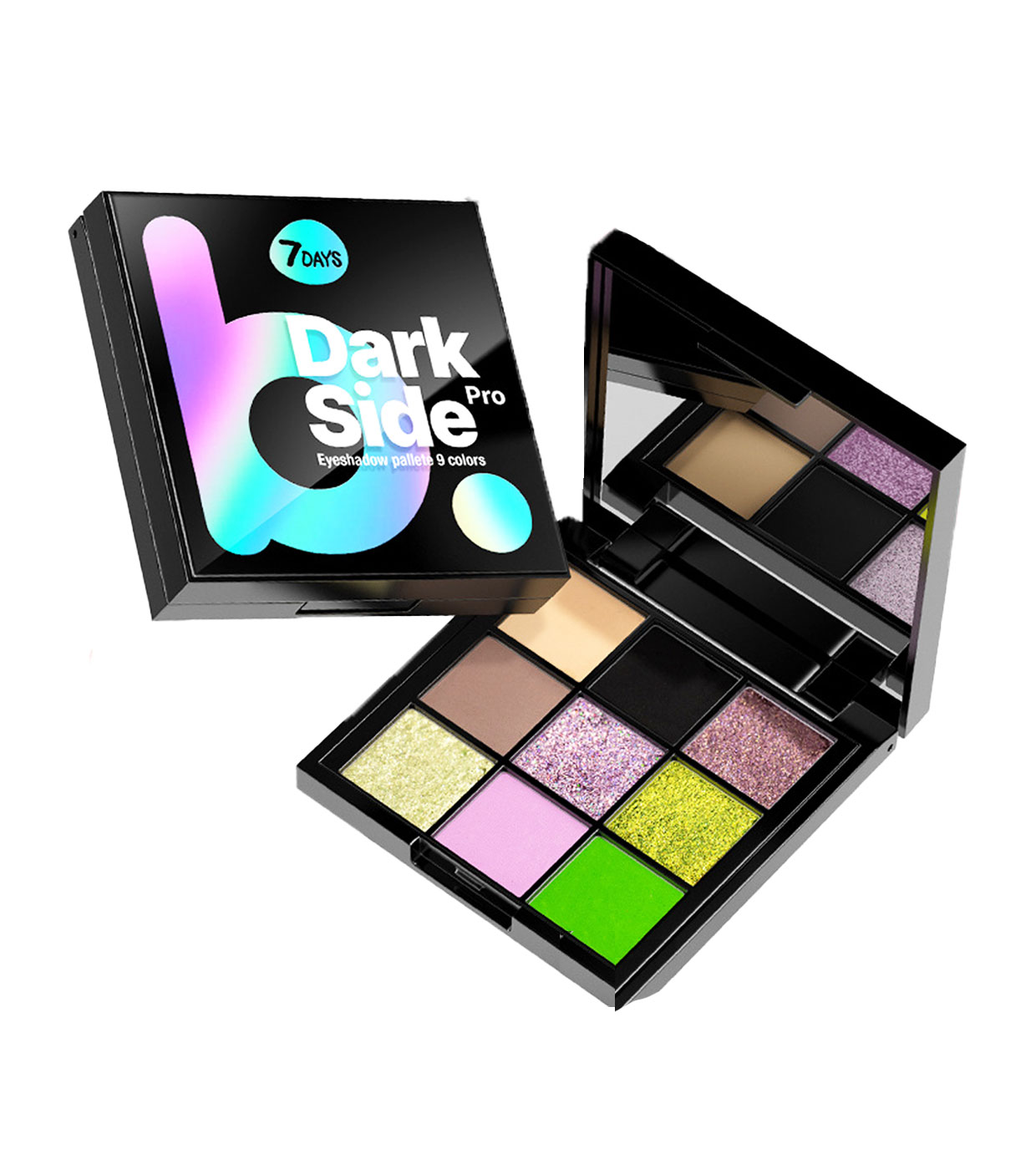 Las sombras de ojos DARK SIDE de B.Colour (7 Days) son una paleta de 9 tonos cuidadosamente seleccionados para lograr maquillajes vibrantes o sutiles, perfectos para cualquier ocasión, ya sea de día o de noche.