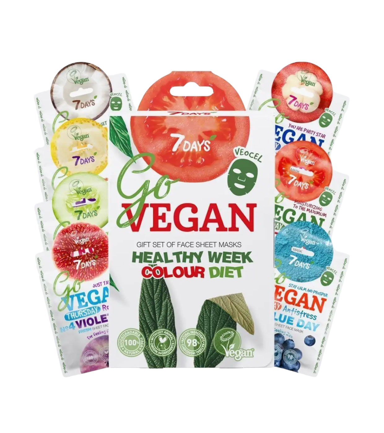 Descubre la armonía entre el cuidado personal y la sostenibilidad con el Set de Regalo de Mascarillas Faciales GO VEGAN Healthy Week Colour Diet de 7 Days.