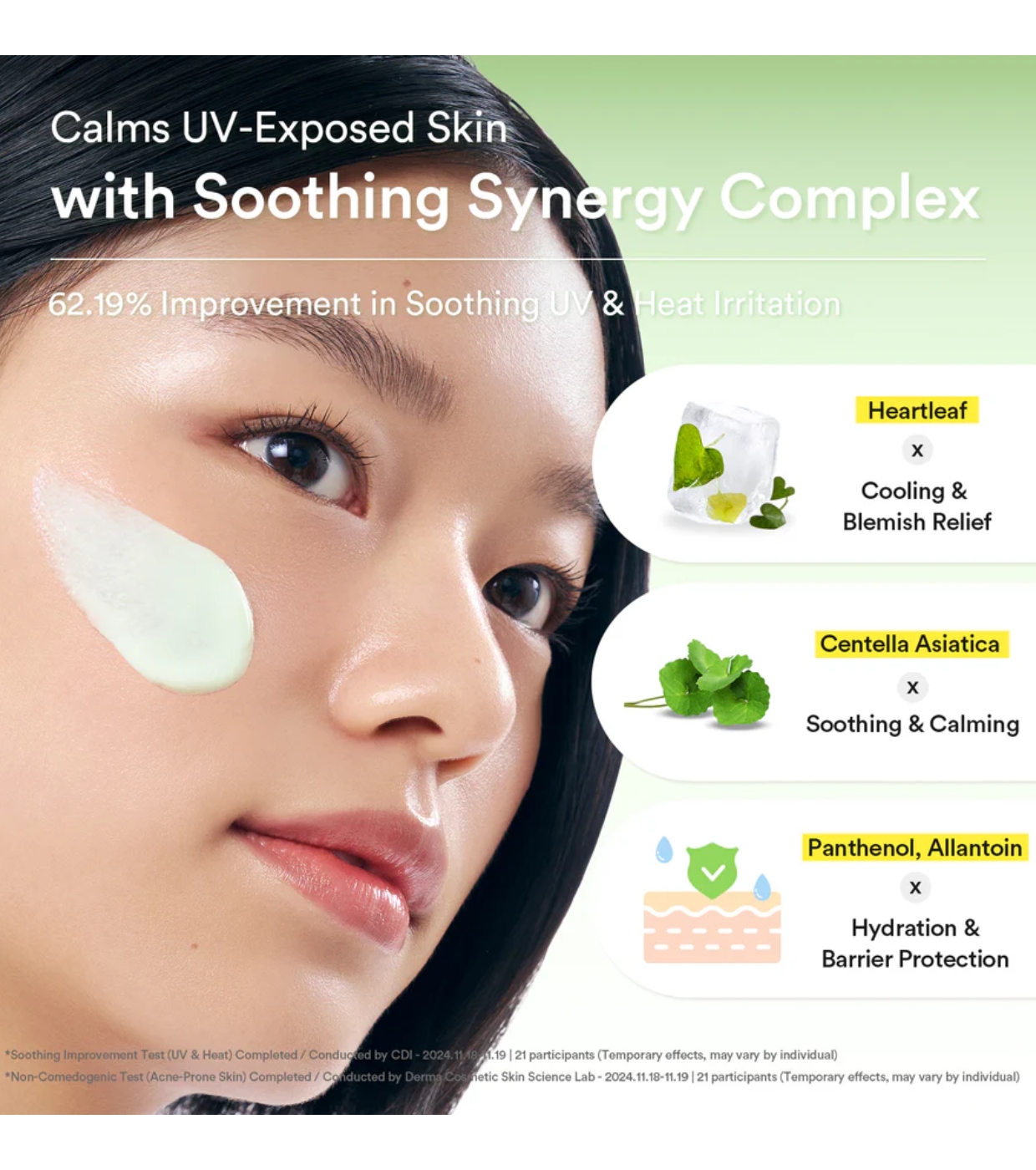 Su fórmula está enriquecida con Houttuynia Cordata (Heartleaf) y Centella Asiática, ingredientes conocidos por sus propiedades calmantes que ayudan a reducir la inflamación, mejorar la apariencia de las rojeces y reforzar la barrera cutánea.