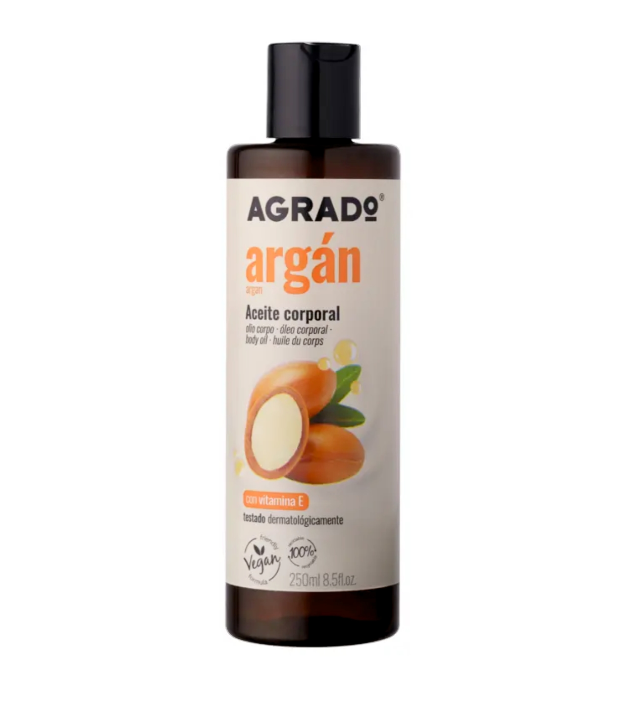 El Aceite Corporal Argán AGRADO hidrata y suaviza la piel dejándola suave y sedosa al tacto.