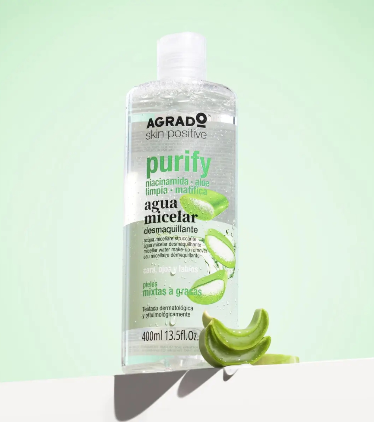 Limpia y desmaquilla en un solo gesto con el Agua Micelar Desmaquillante Purify de Agrado.
