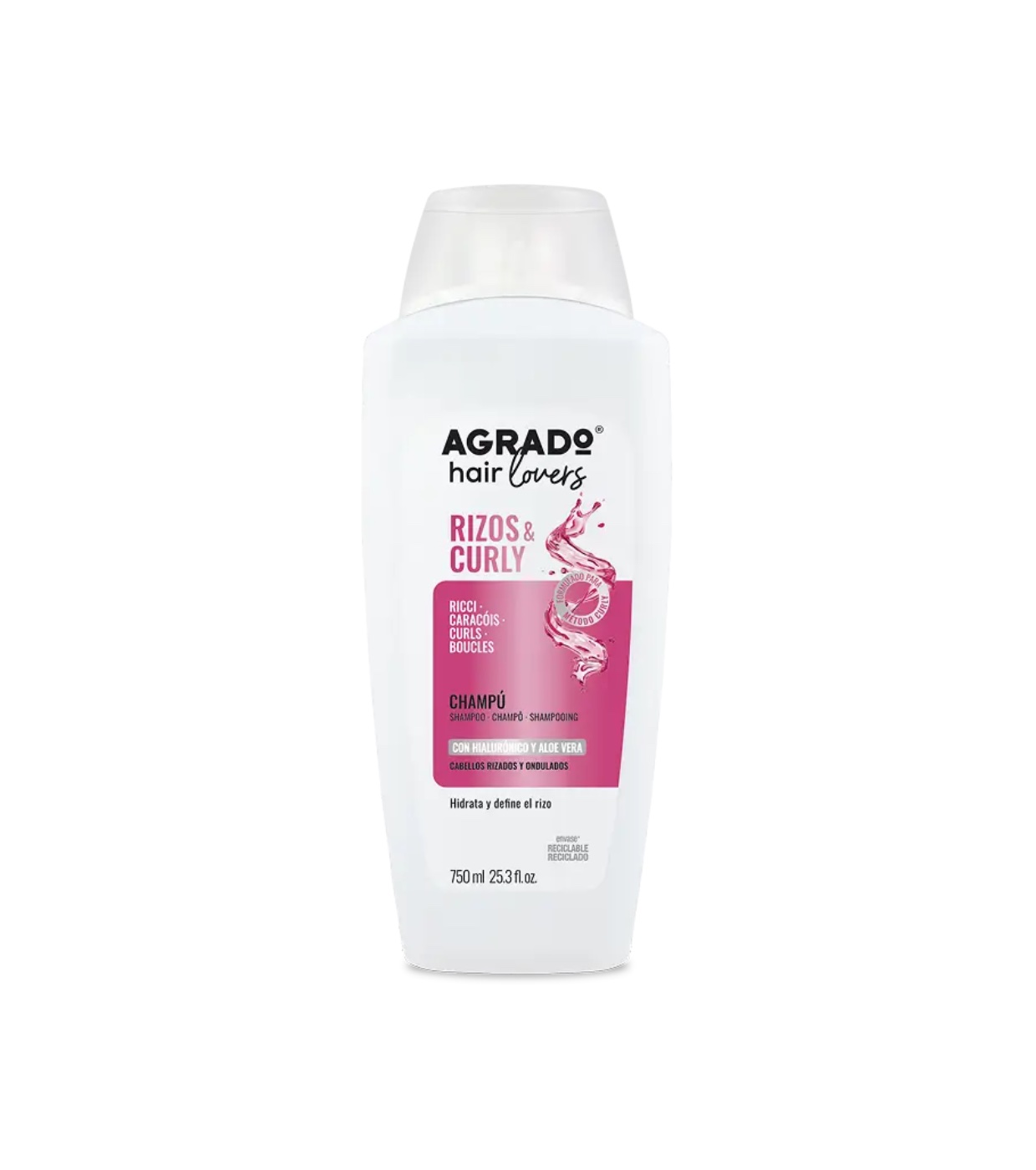 El champú Rizos & Curly de Agrado es un champú libre de sulfatos y low poo, ideales para cuidar tus rizos de forma respetuosa y efectiva.