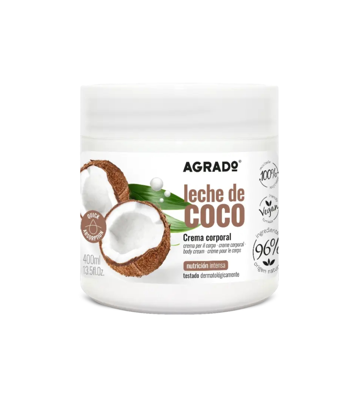 Nutre tu piel cada día con la Crema corporal leche de coco de Agrado.