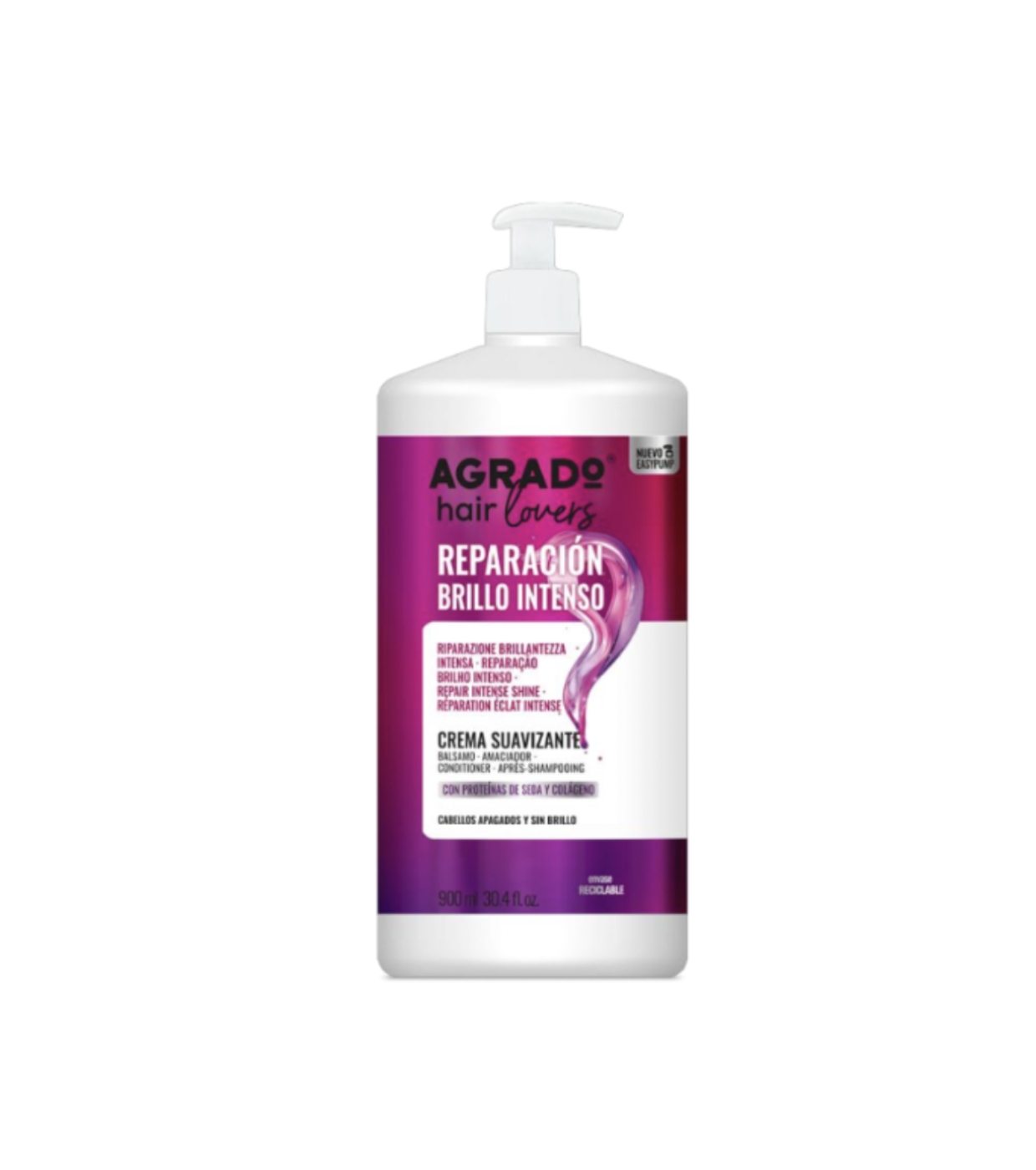 Recupera la suavidad y el resplandor de tu cabello con la Crema suavizante reparación brillo intenso de Agrado.