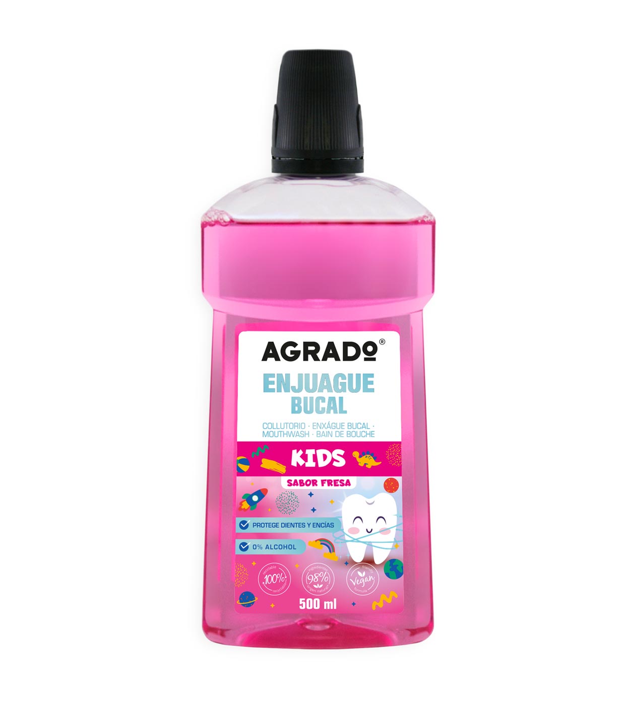 El enjuague bucal kids de Agrado Cosmetic es ideal para el cuidado diario la boca de los pequeños de la casa.