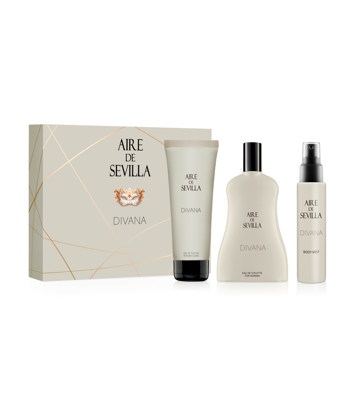 Divana Eau de toilette para mujer + gel de ducha + bruma corporal de Aire de Sevilla es una fragancia diseñada para mujeres que desean irradiar elegancia y sofisticación.