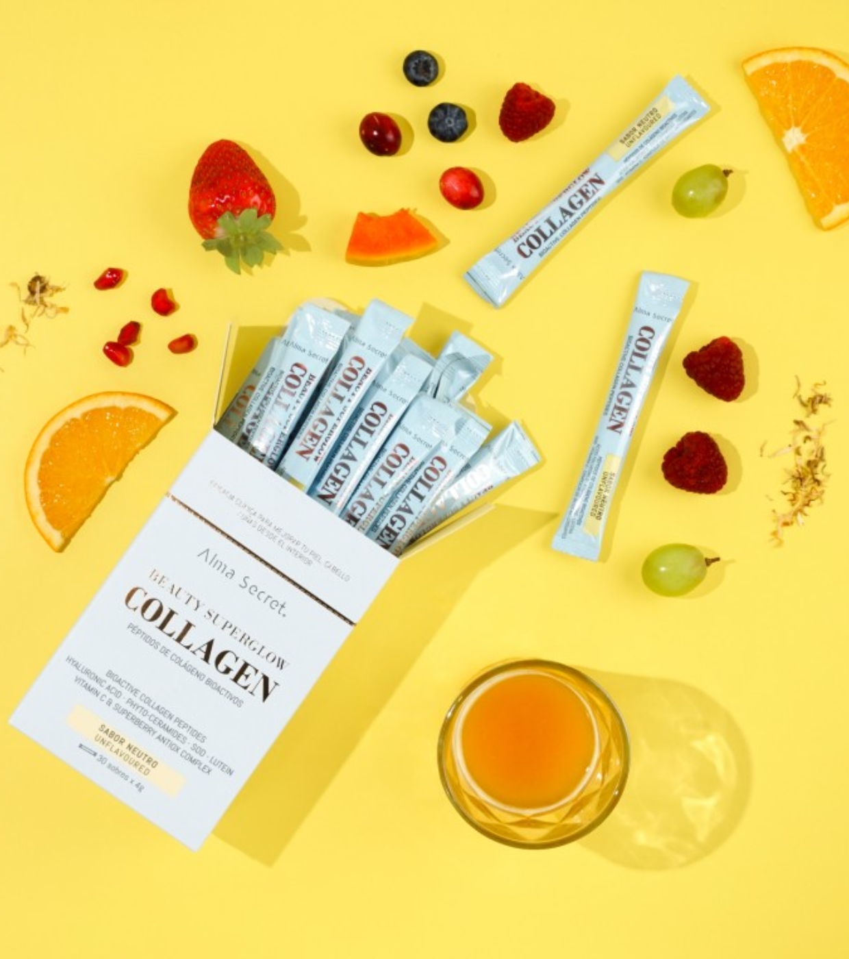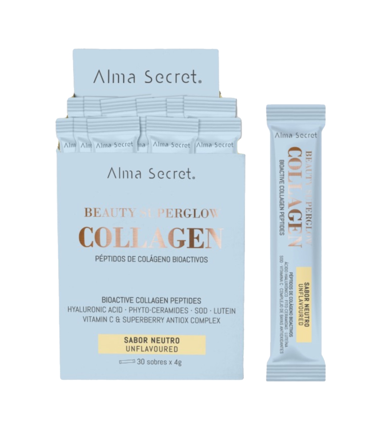 Consigue una piel luminosa, firme y con menos arrugas con el complemento alimenticio Beauty Super Glow Collagen de Alma Secret, el suplemento en polvo de fórmula avanzada que combina colágeno hidrolizado con potentes activos antiedad y antioxidantes.