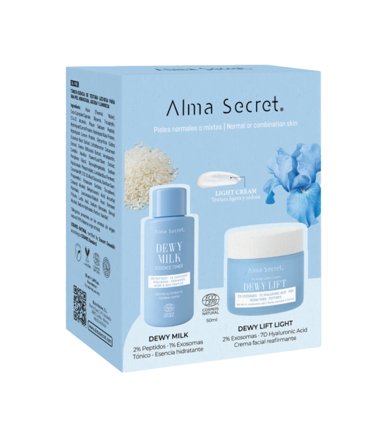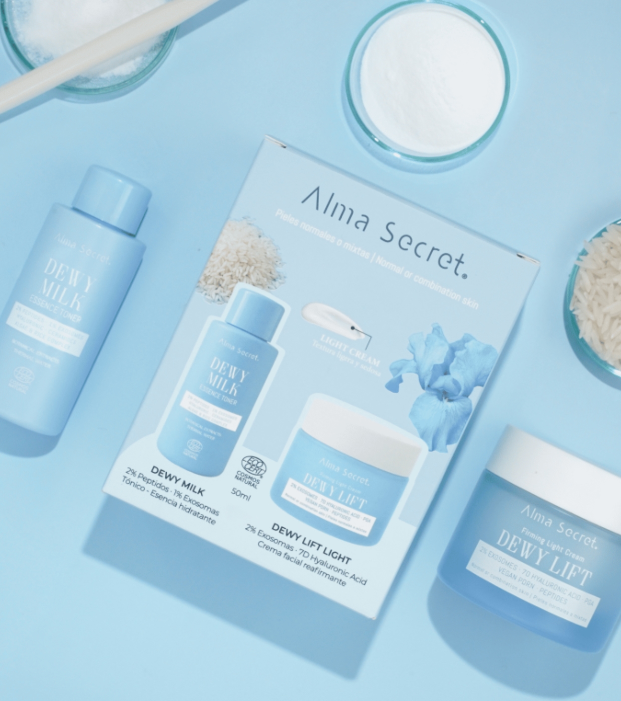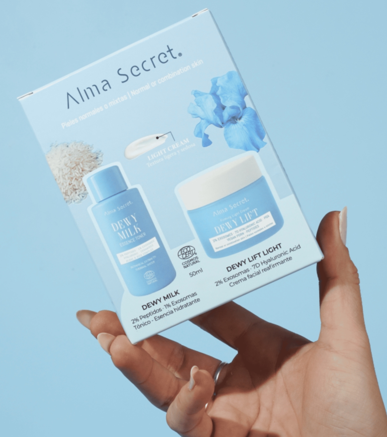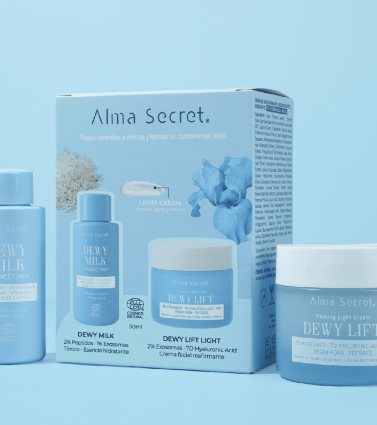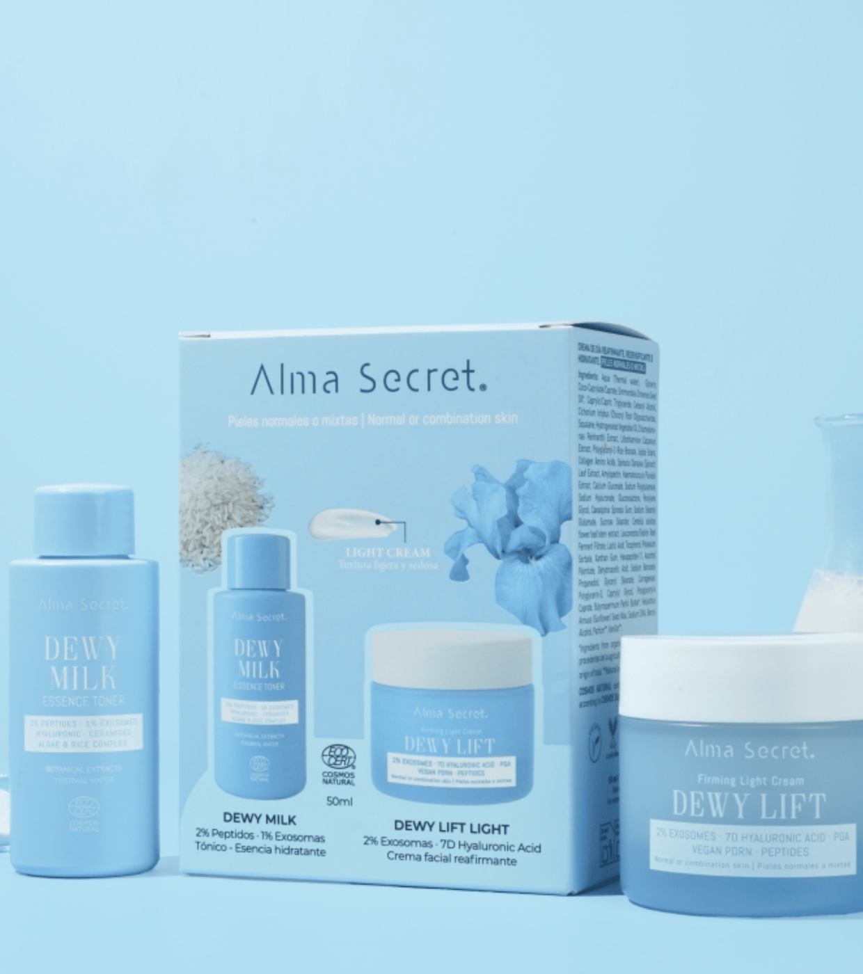 Transforma tu rutina diaria en un ritual de cuidado completo, inteligente y sensorial con el Dúo Dewy de Alma Secret.