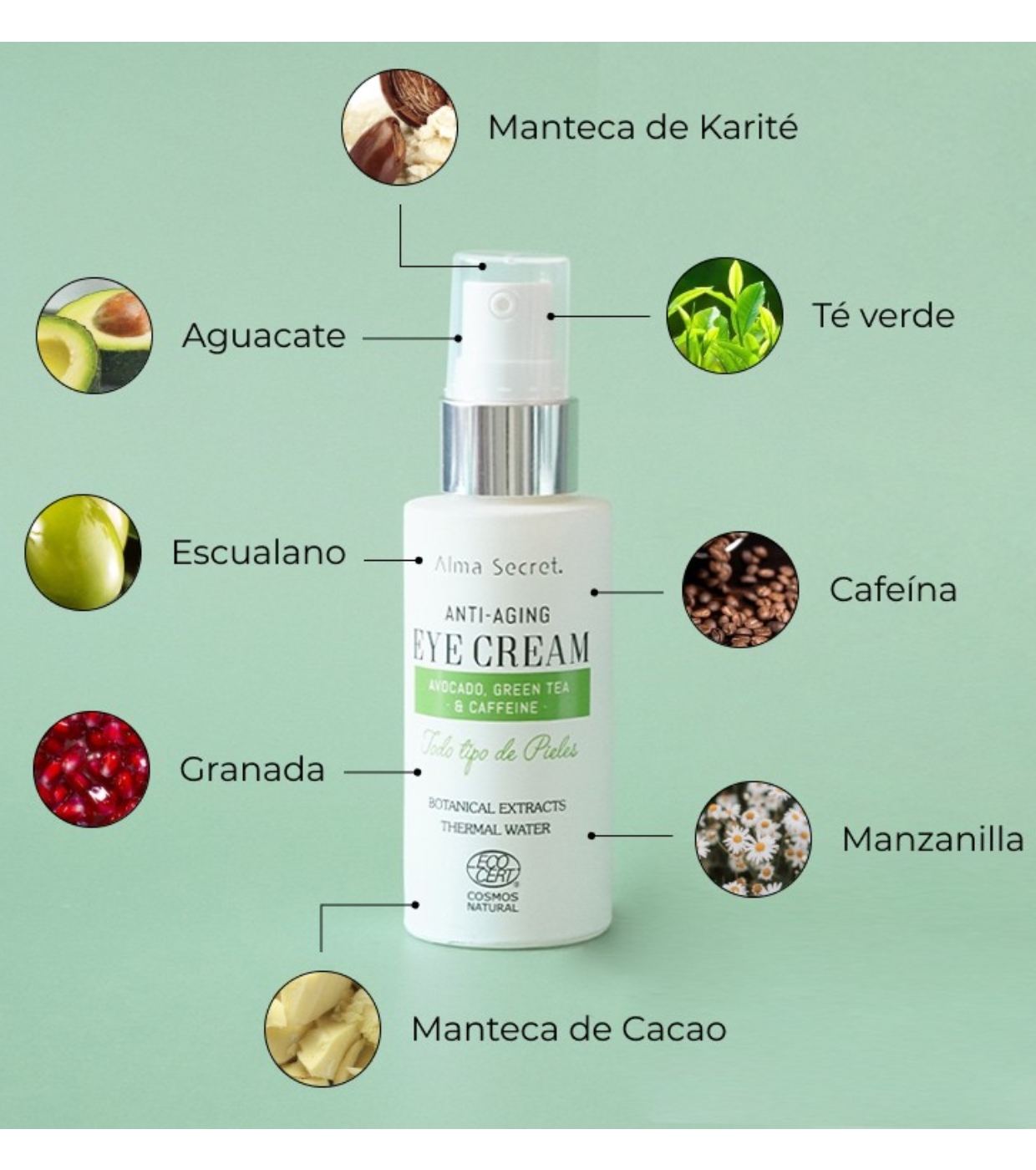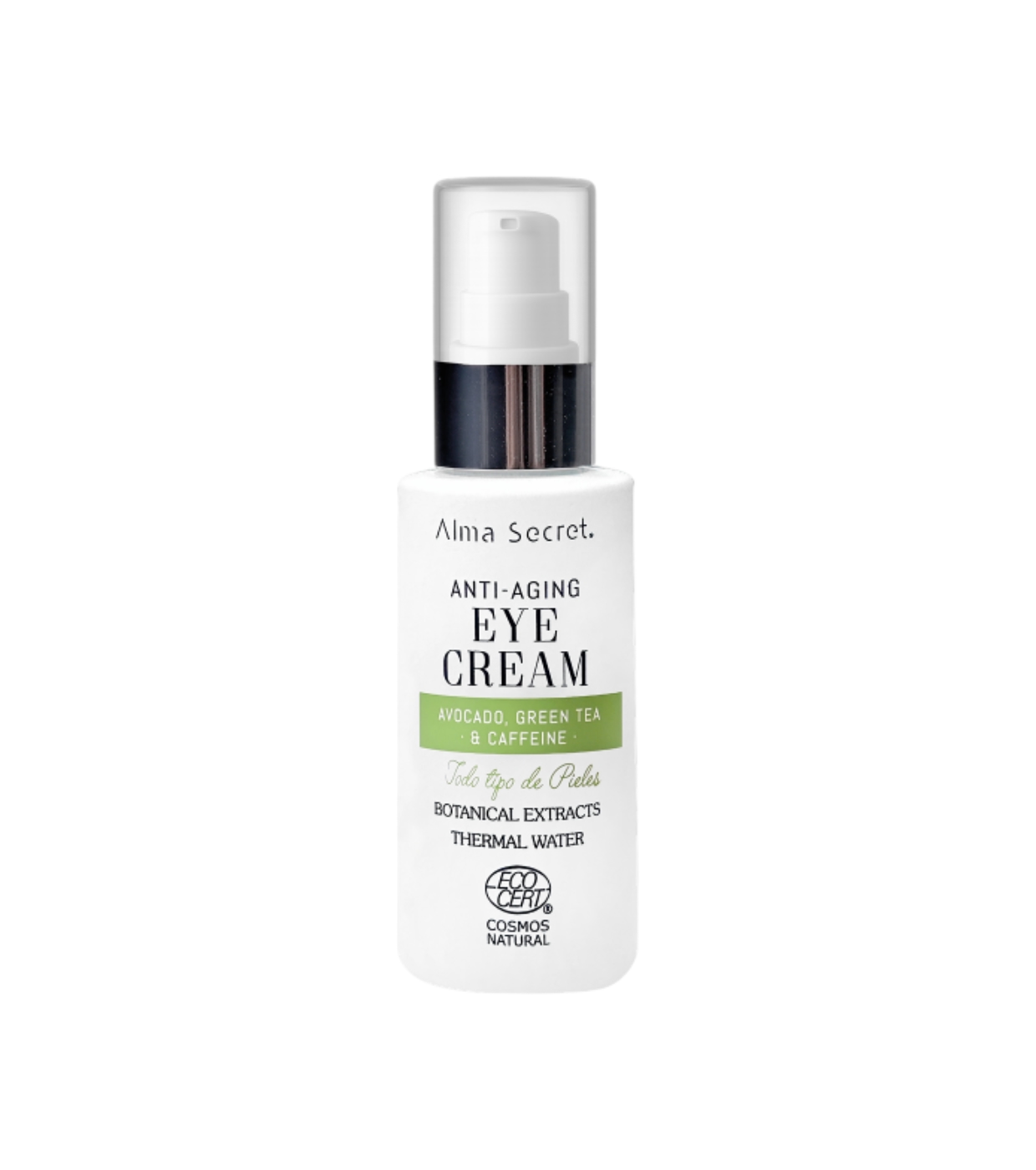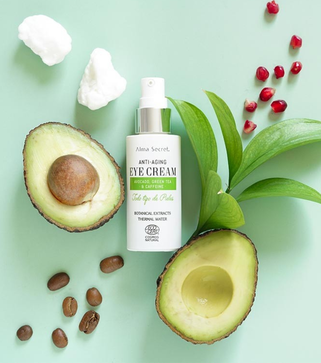El contorno de ojos multi-reparador y antiedad con aguacate, té verde y cafeína de Alma Secret tiene una potente fórmula natural para combatir los signos del envejecimiento y el cansancio en la mirada.