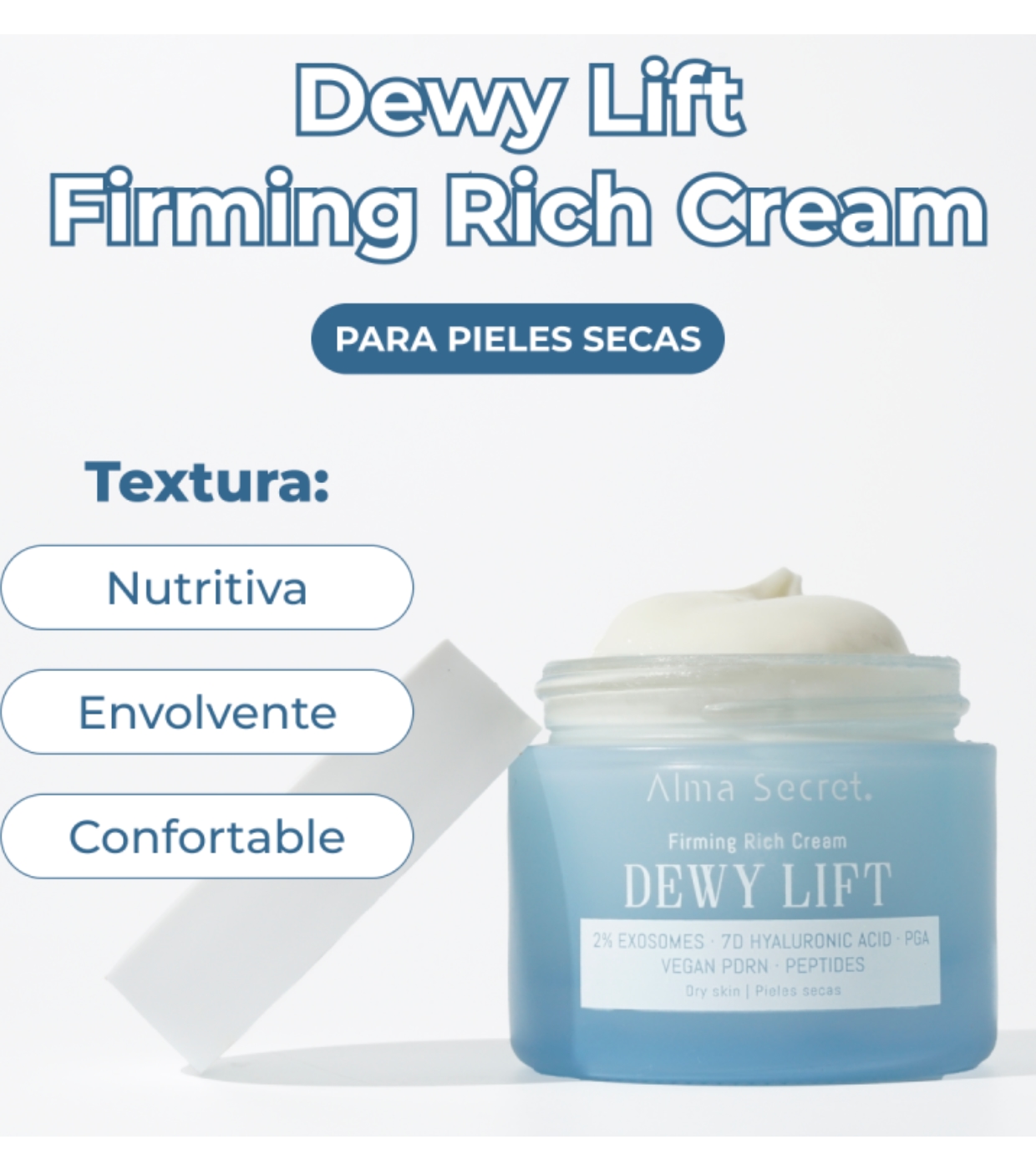 Dewy Lift de Alma Secret es una crema de tratamiento diario que ayuda a mantener la vitalidad y juventud de la piel a cualquier edad.