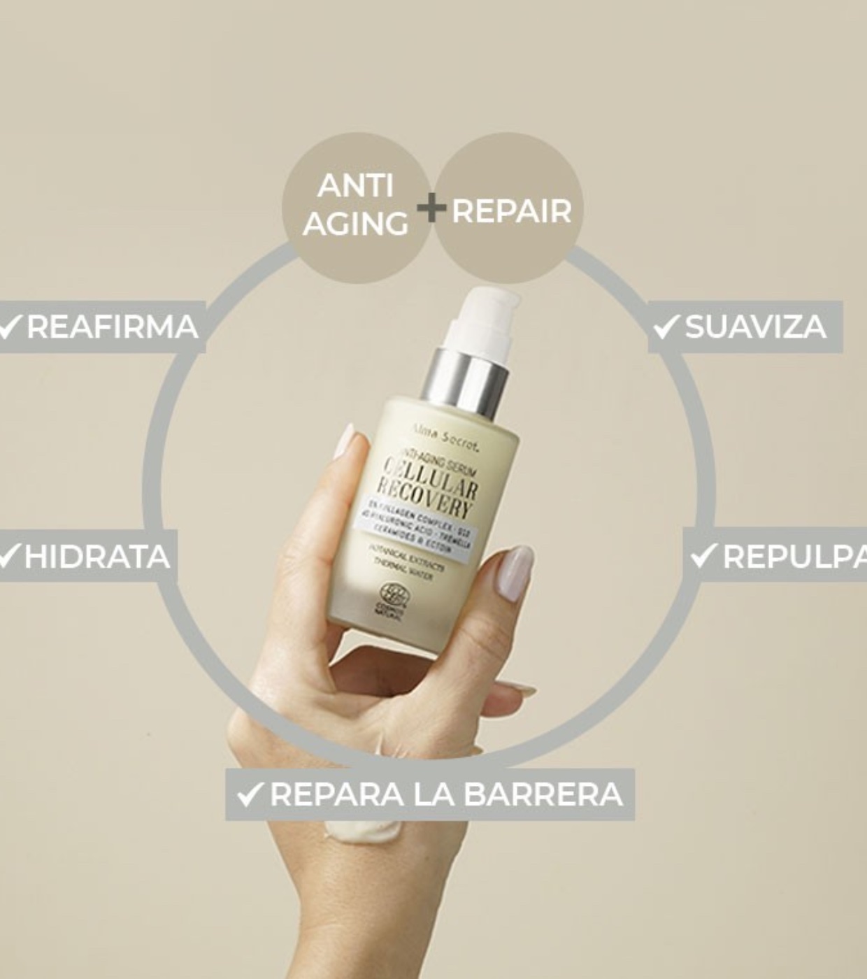 Cellular Recovery es un sérum facial antiedad global y función barrera que actúa como tratamiento intensivo y de alta potencia para reducir la apariencia de las líneas de expresión, aportando firmeza y vitalidad a la piel, rehidratándola profundamente y reparando su barrera.