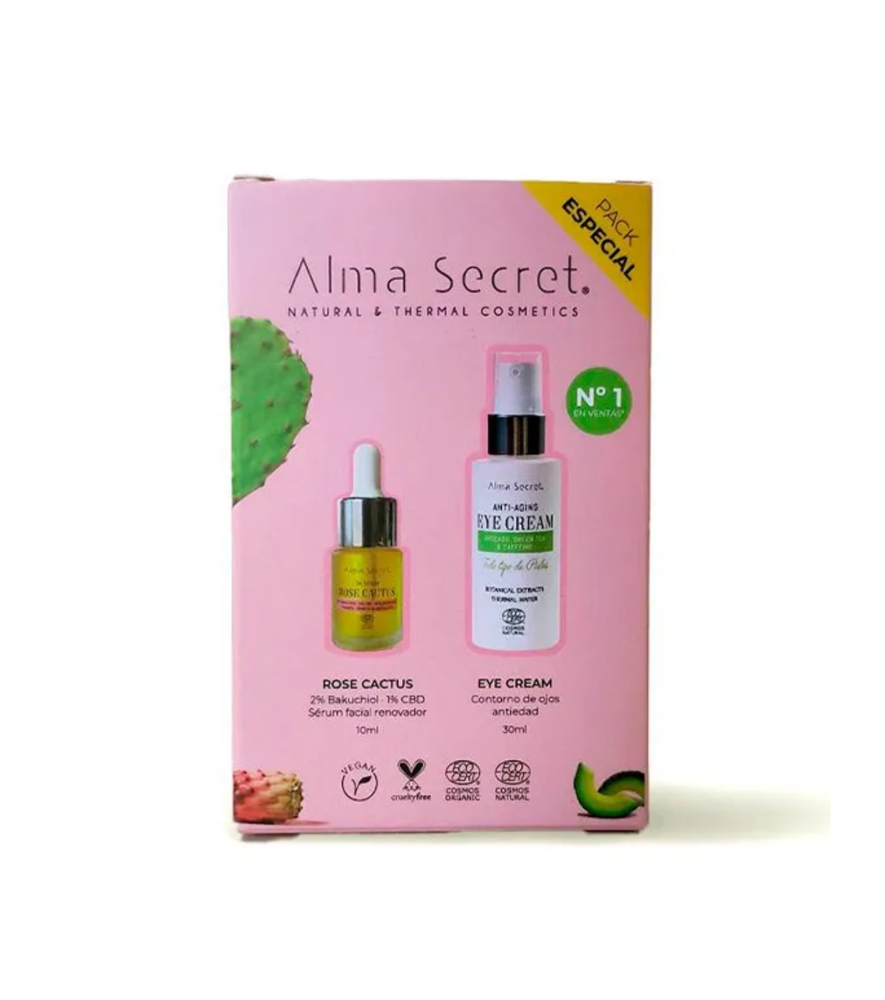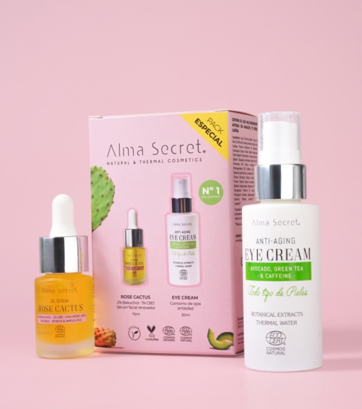El pack ideal facial que toda beautylover estaba esperando: El contorno de ojos Nº1 y el sérum facial Rose Cactus con 2% Bakuchiol será la combinación perfecta para regalar a tu piel la luminosidad, suavidad y firmeza que se merece.