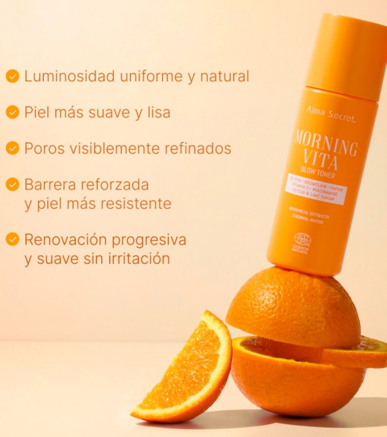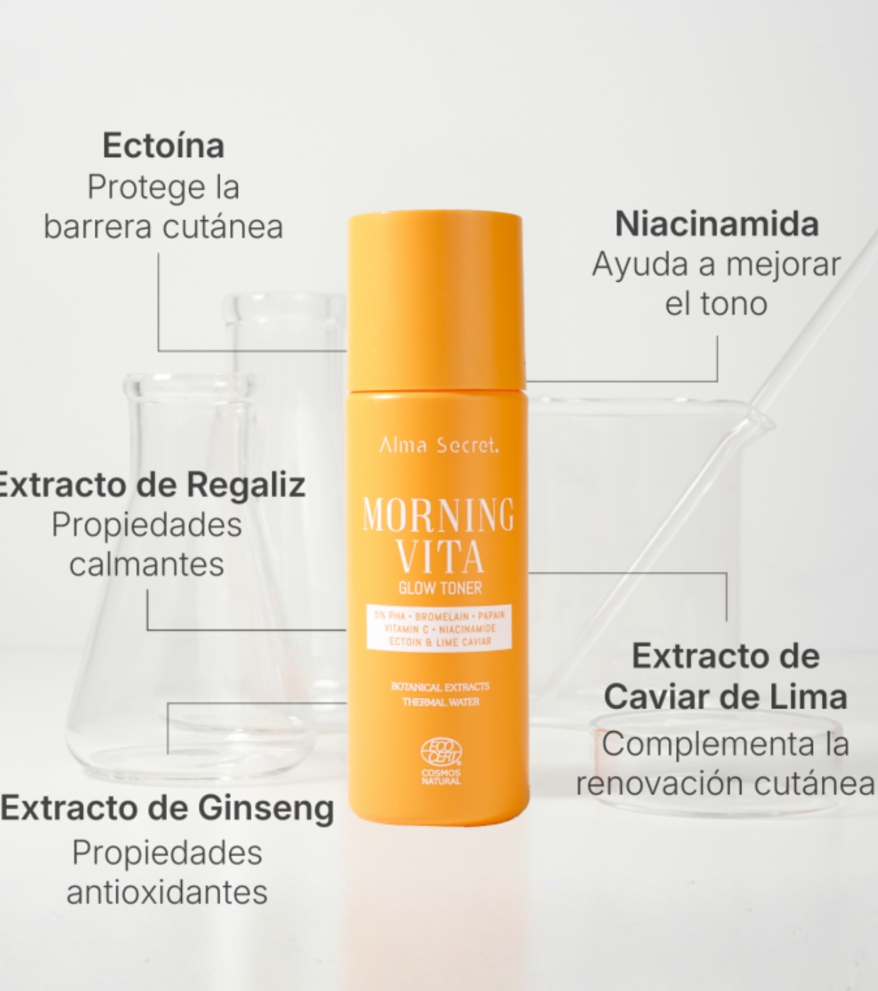 El Morning Vita Glow de Alma Secret es un tónico exfoliante inteligente diseñado para mejorar la luminosidad, unificar el tono y suavizar la textura de la piel desde el primer uso.