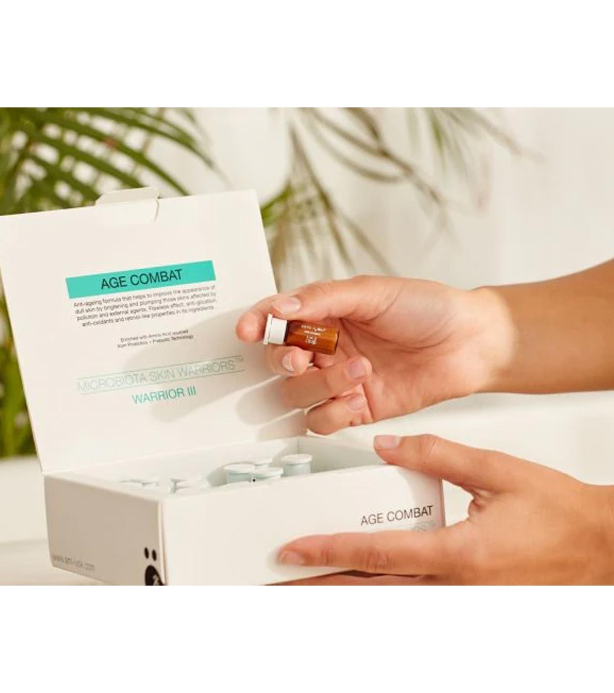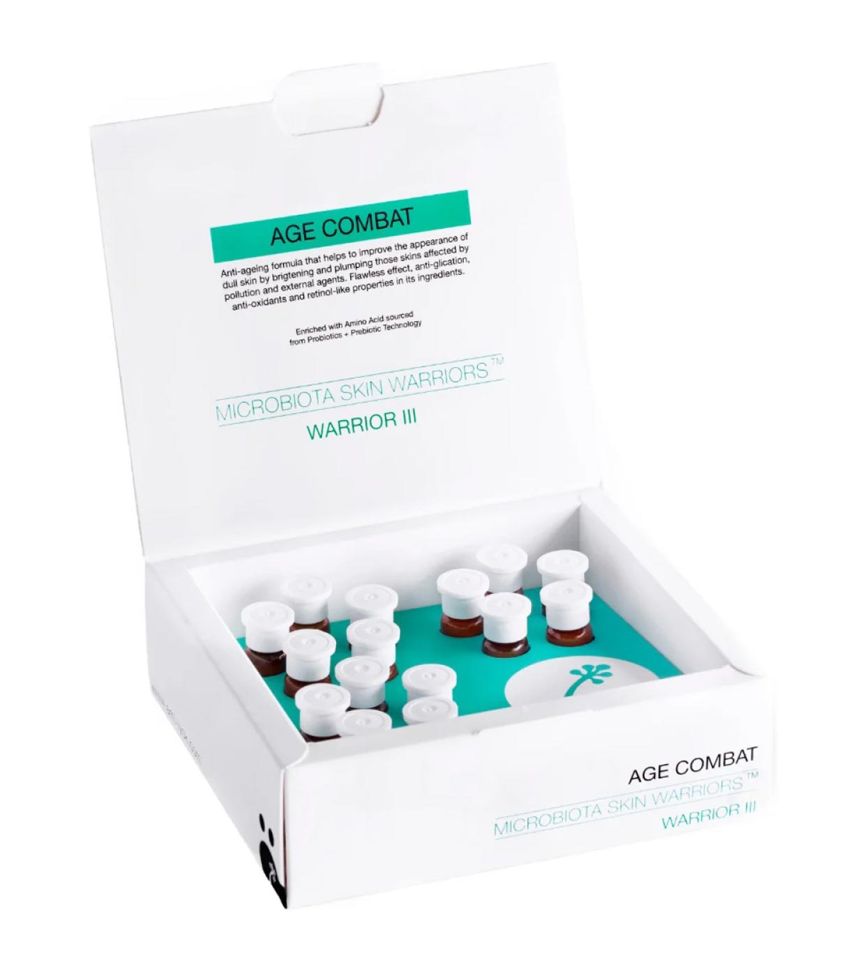 Age Combat es la tercera joya de la línea Microbiota Skinwarriors™, diseñada para combatir los signos del envejecimiento y revitalizar la piel.