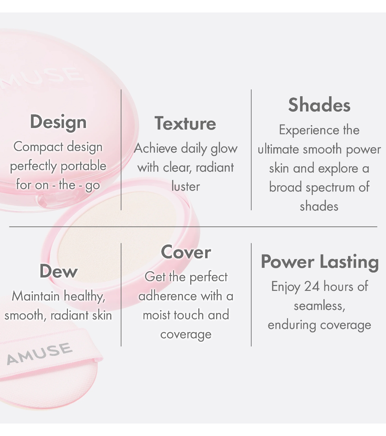 El Dew Power Vegan Cushion de AMUSE es mucho más que una base: es maquillaje + tratamiento + protección solar en un solo producto.