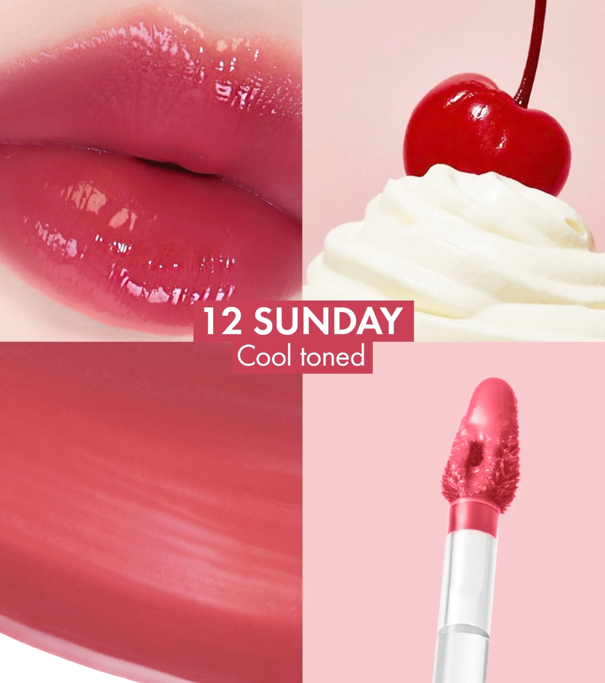 El Dew Tint de AMUSE es un tinte labial vegano de textura ligera y base acuosa que aporta un acabado jugoso, brillante y natural.