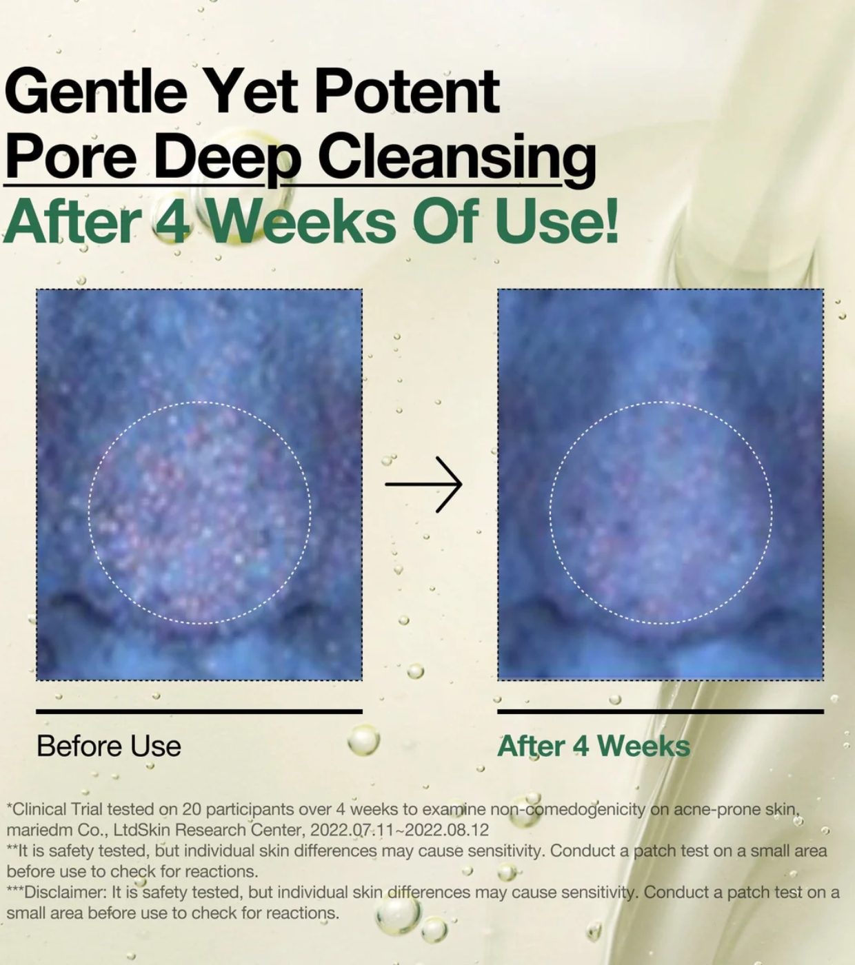 - Limpieza profunda: Disuelve la suciedad y el exceso de sebo, destapando poros obstruidos y reduciendo puntos negros.