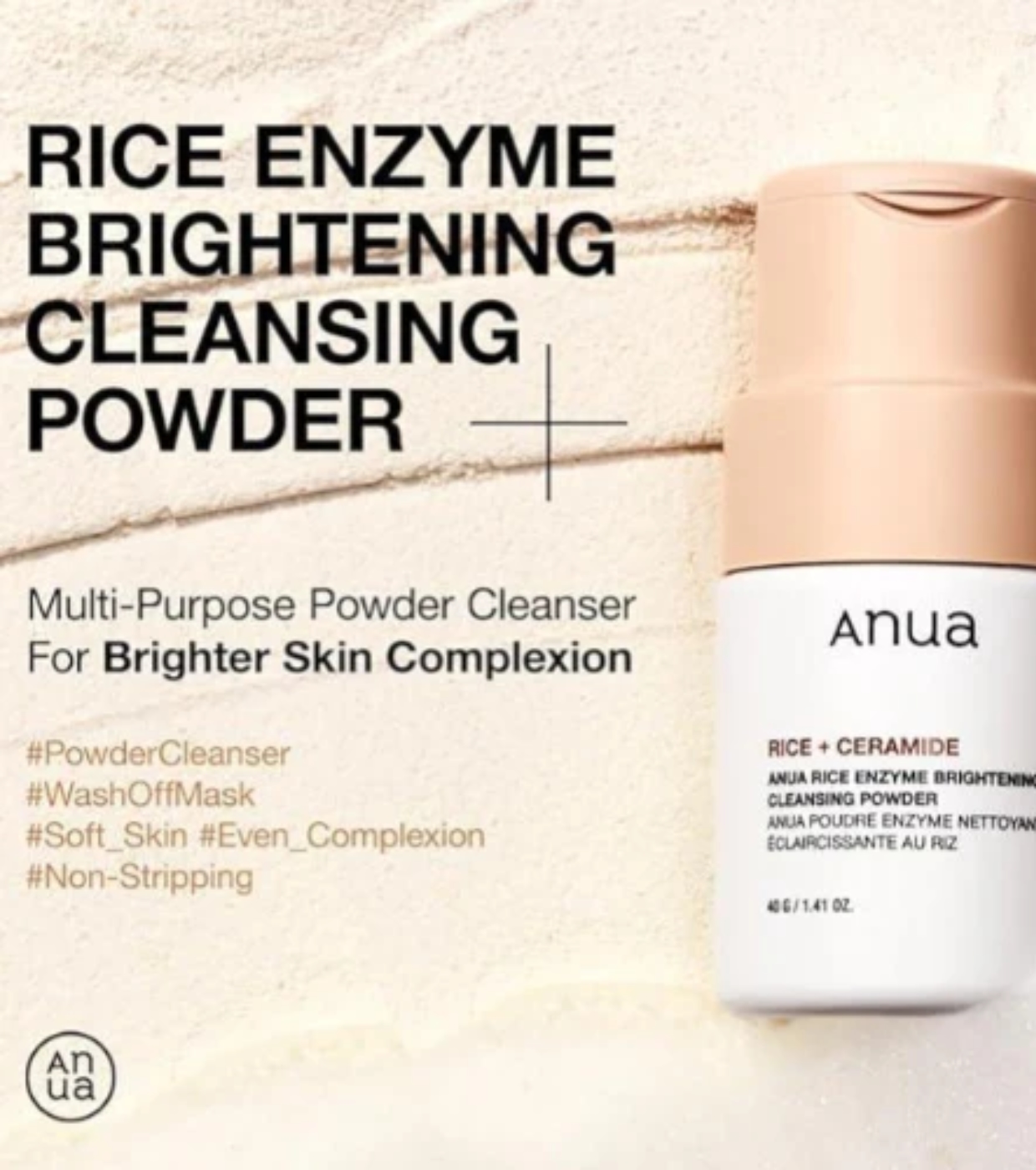 El limpiador Rice Enzyme Brightening Cleansing Powder de Anua es un innovador producto de limpieza facial ya que combina exfoliación suave y cuidado de la piel en un solo paso.