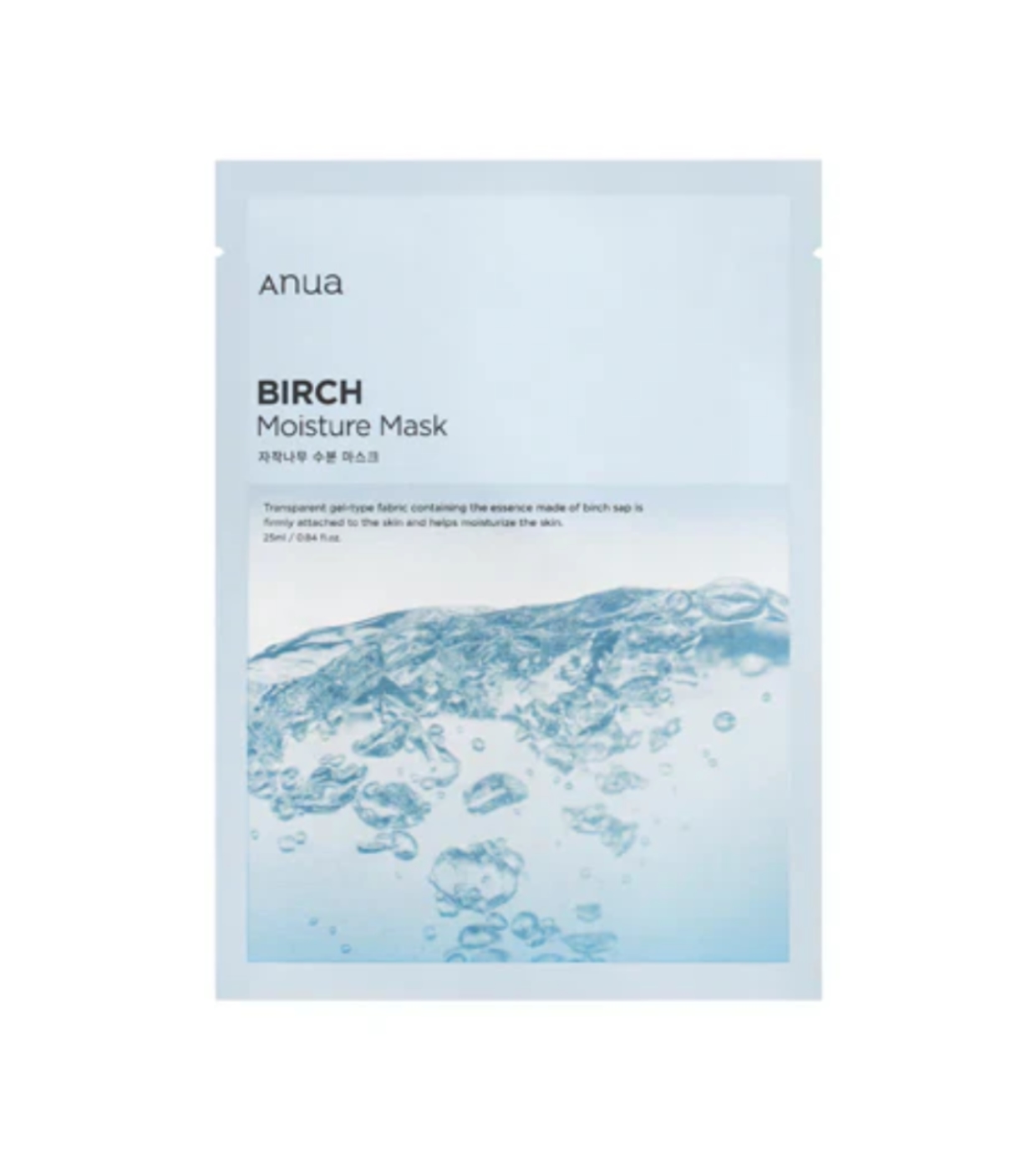 Descubre la hidratación profunda con nuestra mascarilla de hoja Birch Moisturede Anua, enriquecida con extracto natural de abedul.