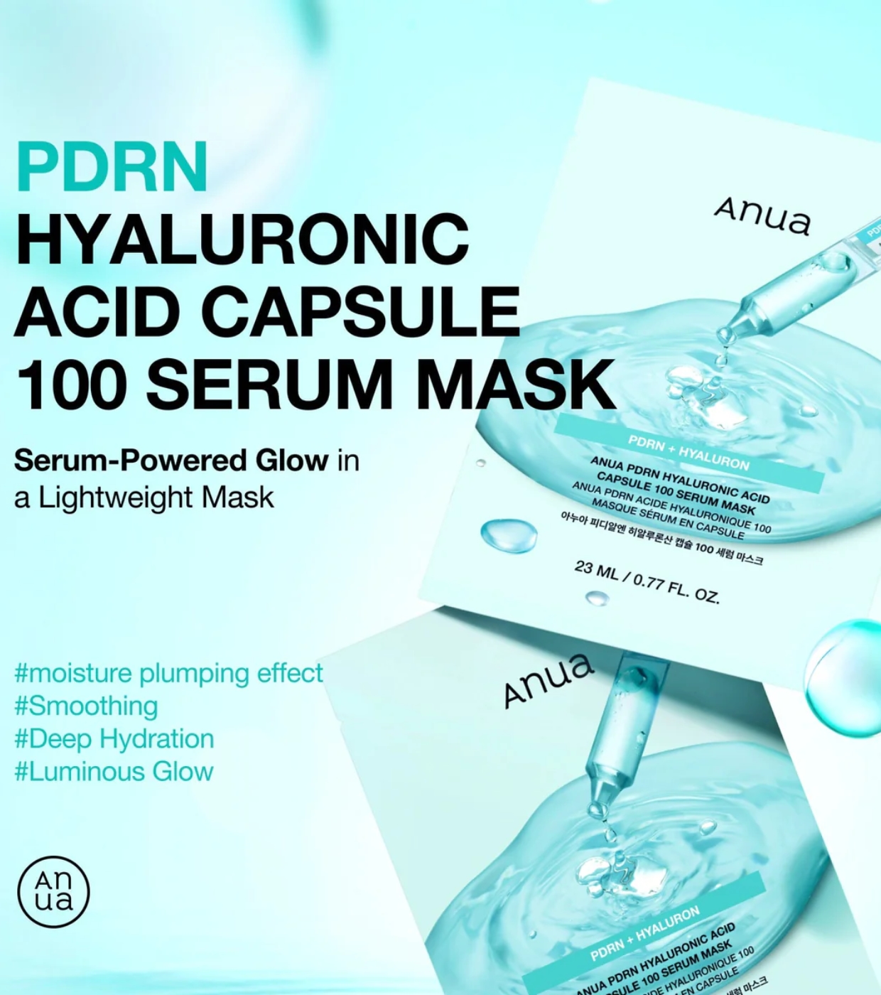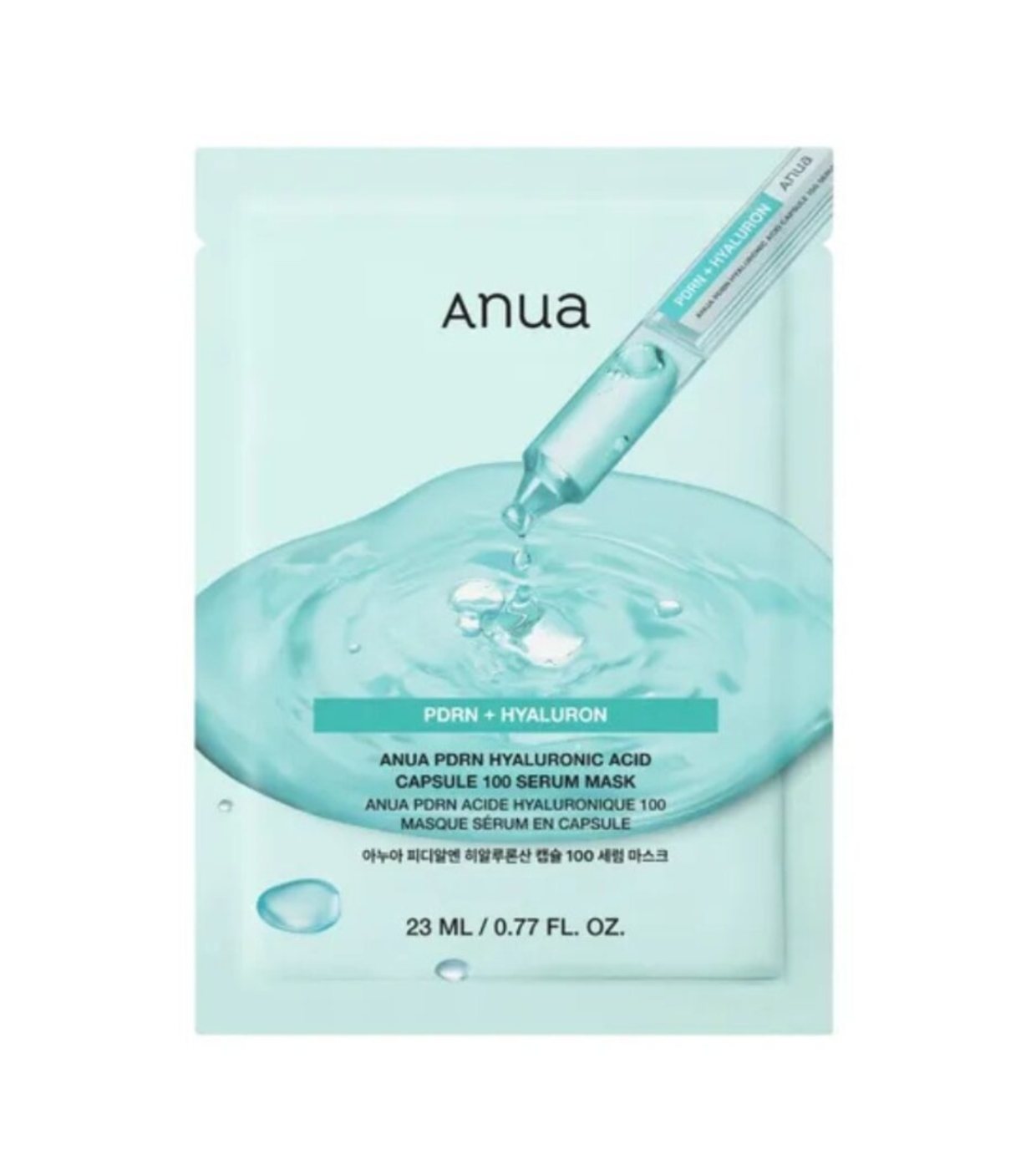 La Anua PDRN Hyaluronic Acid Capsule 100 Serum Mask es una mascarilla facial de hidrogel ultrafina diseñada para aportar hidratación profunda, regeneración epidérmica y luminosidad inmediata.