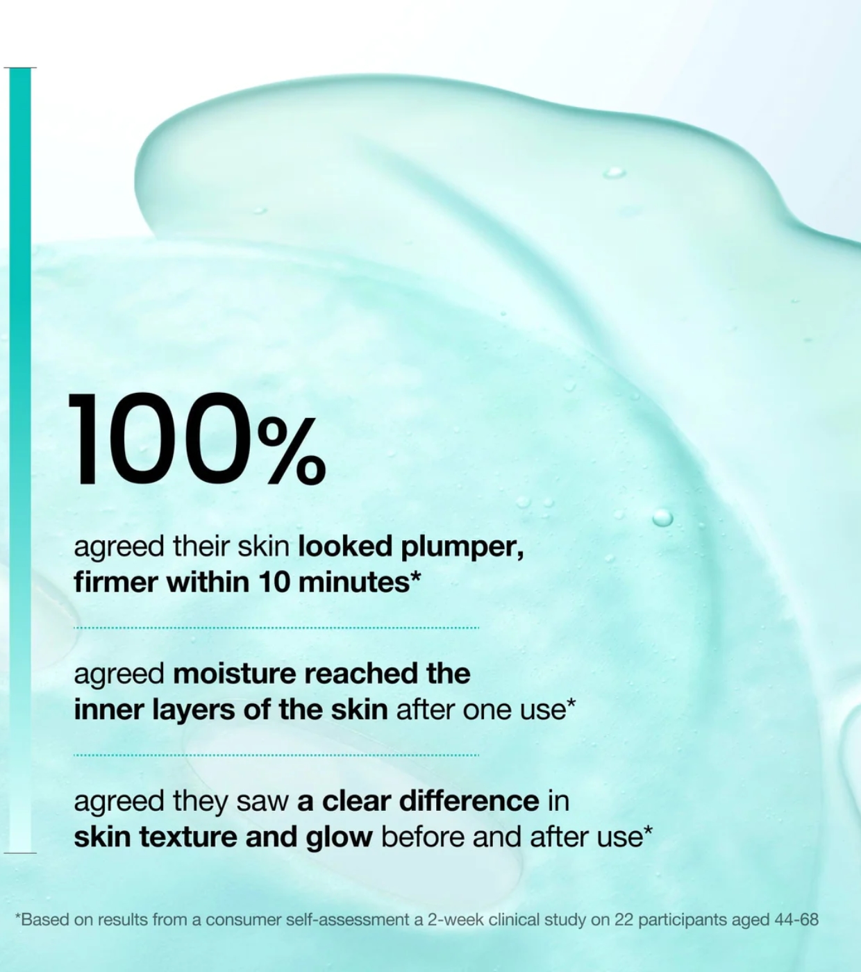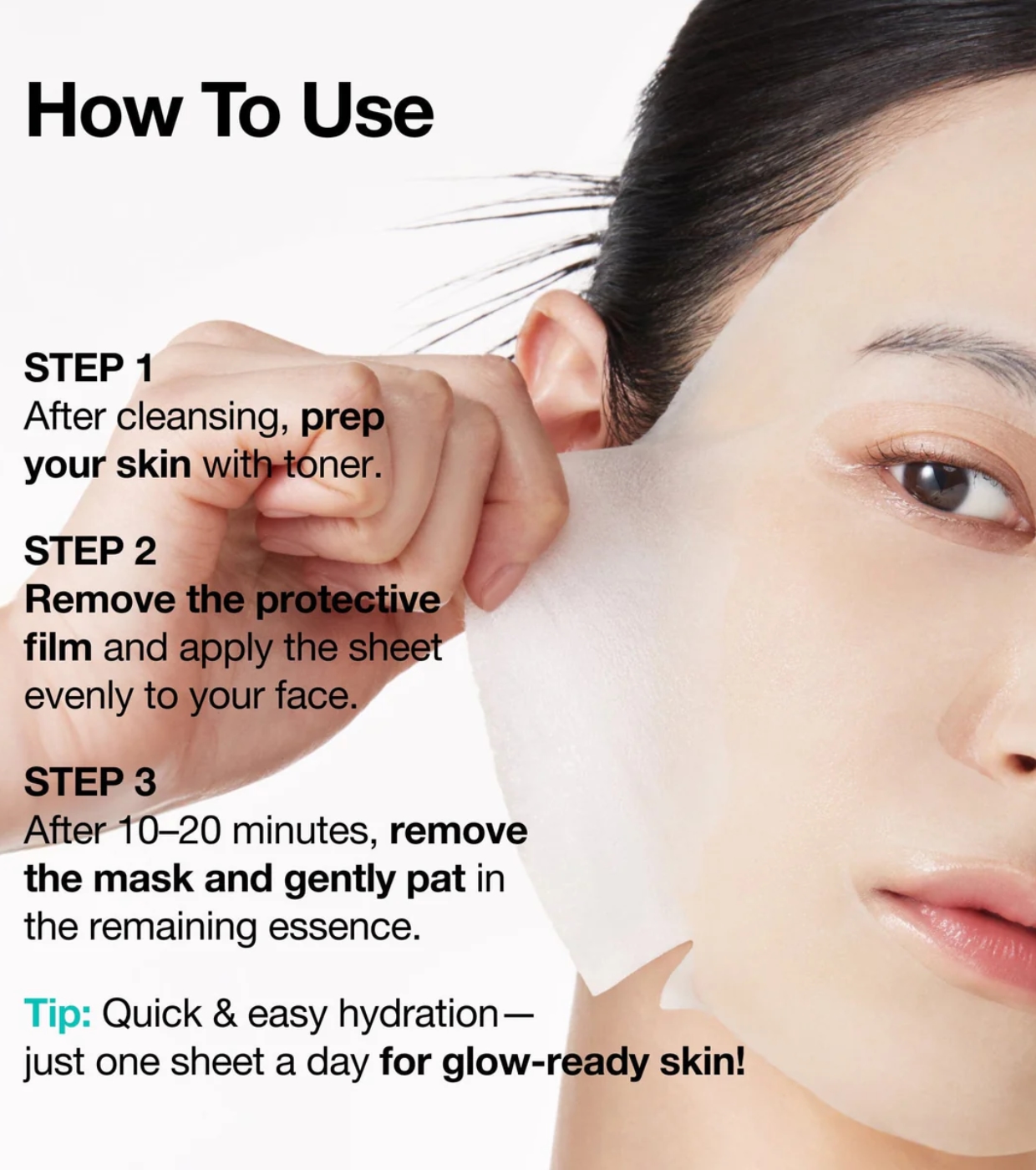 Gracias a su hidrogel ultrafino, la mascarilla se adhiere perfectamente al rostro, permitiendo una entrega máxima de activos. Los resultados son visibles desde la primera aplicación: