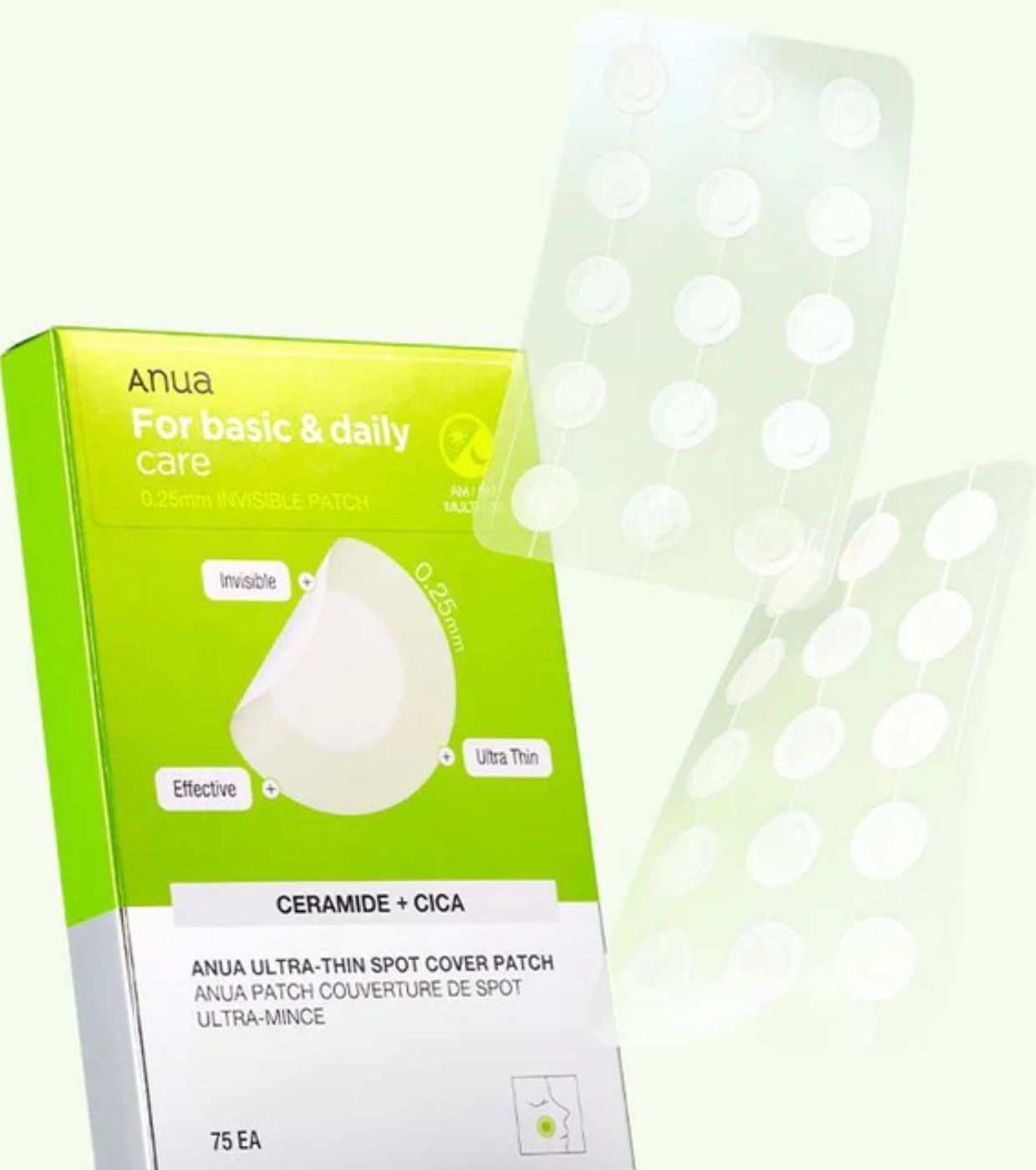 Trata y oculta imperfecciones de forma eficaz y discreta. Los parches para imperfecciones de con ceramida + CICA de Anua de solo 0,25 mm de grosor forman una barrera protectora contra bacterias, contaminación y manipulaciones, mientras absorben el exceso de sebo y fluidos para acelerar la curación.