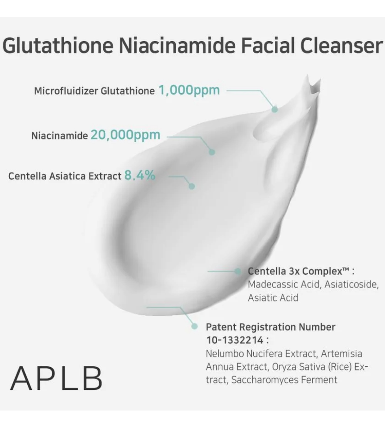 Aqua(Water), Glycerin, Stearic Acid, Centella Asiatica Leaf Water, Lauric Acid, Myristic Acid, Potassium Hydroxide, 1, 2-Hexanediol, Glycol Distearate, Coco-glucoside, Potassium Cocoyl Glycinate, Glyceryl Stearate, PEG-100 Stearate, Sorbitan Olivate, Polysorbate 60, Beeswax, Niacinamide, Glutathione, Disodium EDTA, Hydroxypropyl Methylcellulose, Butylene Glycol, Dipropylene Glycol, Squalane, Asiaticoside, Madecassic Acid, Asiatic Acid, Sodium Hyaluronate, Melaleuca Alternifolia (Tea Tree) Leaf Extract, Hippophae Rhamnoides Fruit Extract, Hydrolyzed Collagen, Beta-Glucan, Caprylyl Glycol, Nelumbium Speciosum Flower Extract, Artemisia Annua Extract, Oryza Sativa (Rice) Extract, Saccharomyces Ferment, Solanum Melongena (Eggplant) Fruit Extract