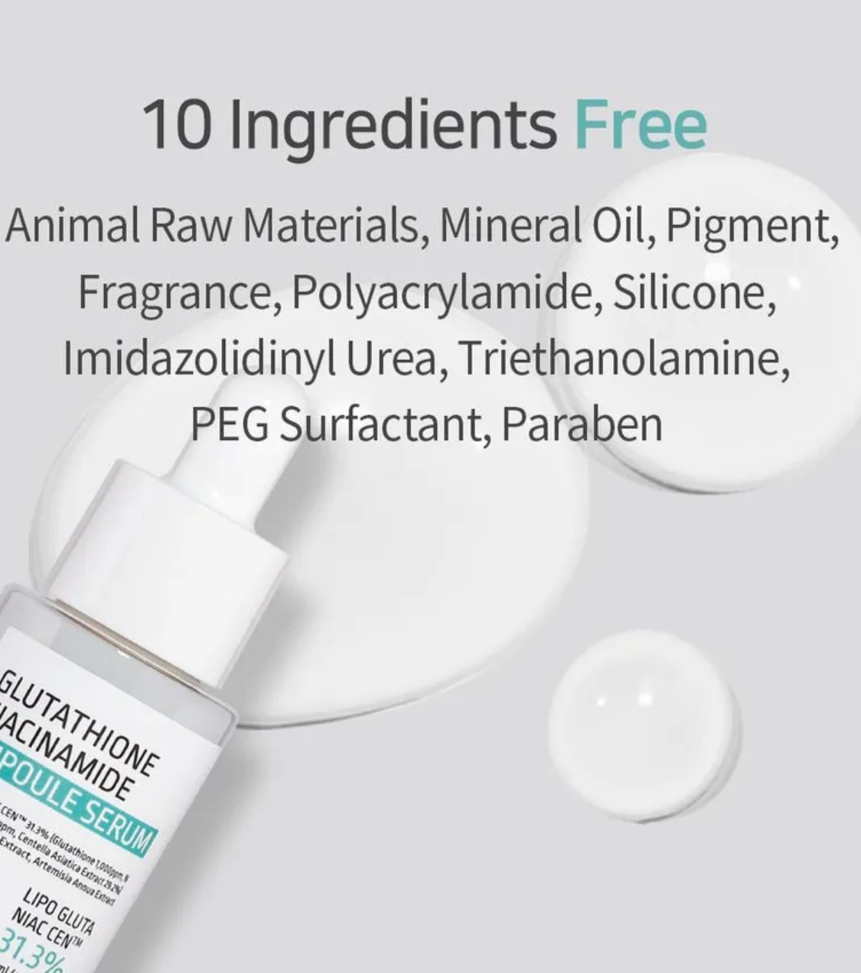 Su fórmula avanzada combina 1000 ppm de glutatión y 20 000 ppm de niacinamida, dos potentes activos que ayudan a reducir la apariencia de manchas, equilibrar el tono y aportar un aspecto más claro y uniforme.