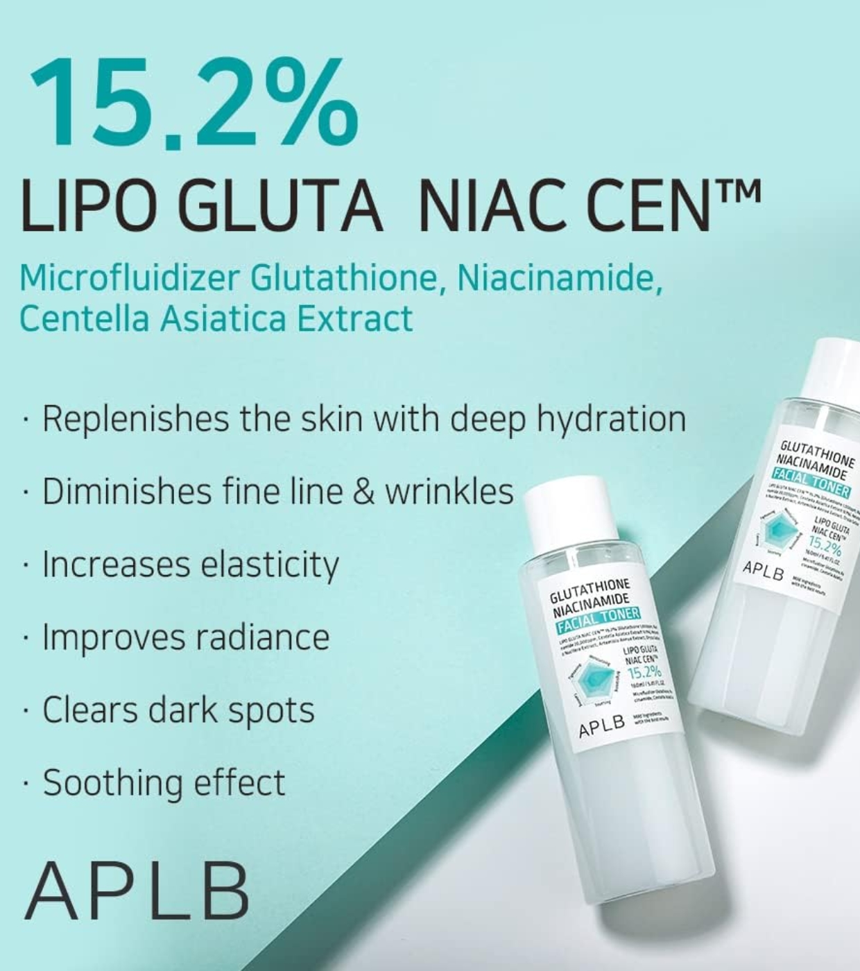 El Glutathione Niacinamide Facial Toner de APLB es un tónico facial ligero de uso diario que ayuda a hidratar, calmar y mejorar la textura y luminosidad de la piel.