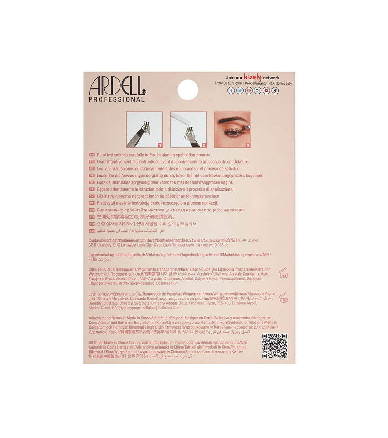 Incluye un pegamento transparente Duo Longwear Lash Glue diseñado específicamente para la aplicación de pestañas sobre pestañas.