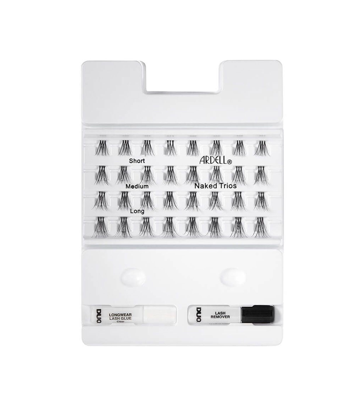 Naked Trios de Ardell es un kit de pestañas que simplifica el proceso al combinar tres pestañas individuales en una banda transparente ultrafina.