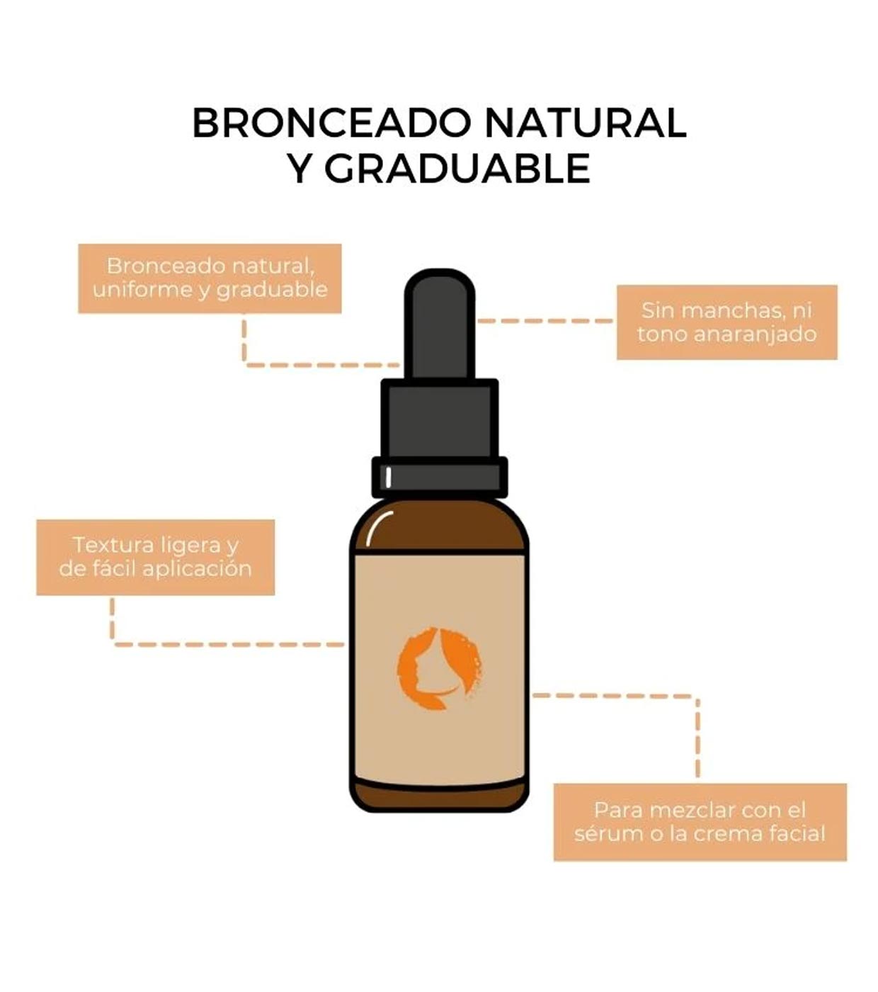 El autobronceador facial de Arganour está formulado con un complejo de activos naturales que broncea gradualmente la piel del rostro, ofreciendo un resultado natural, sin manchas y sin tono anaranjado.