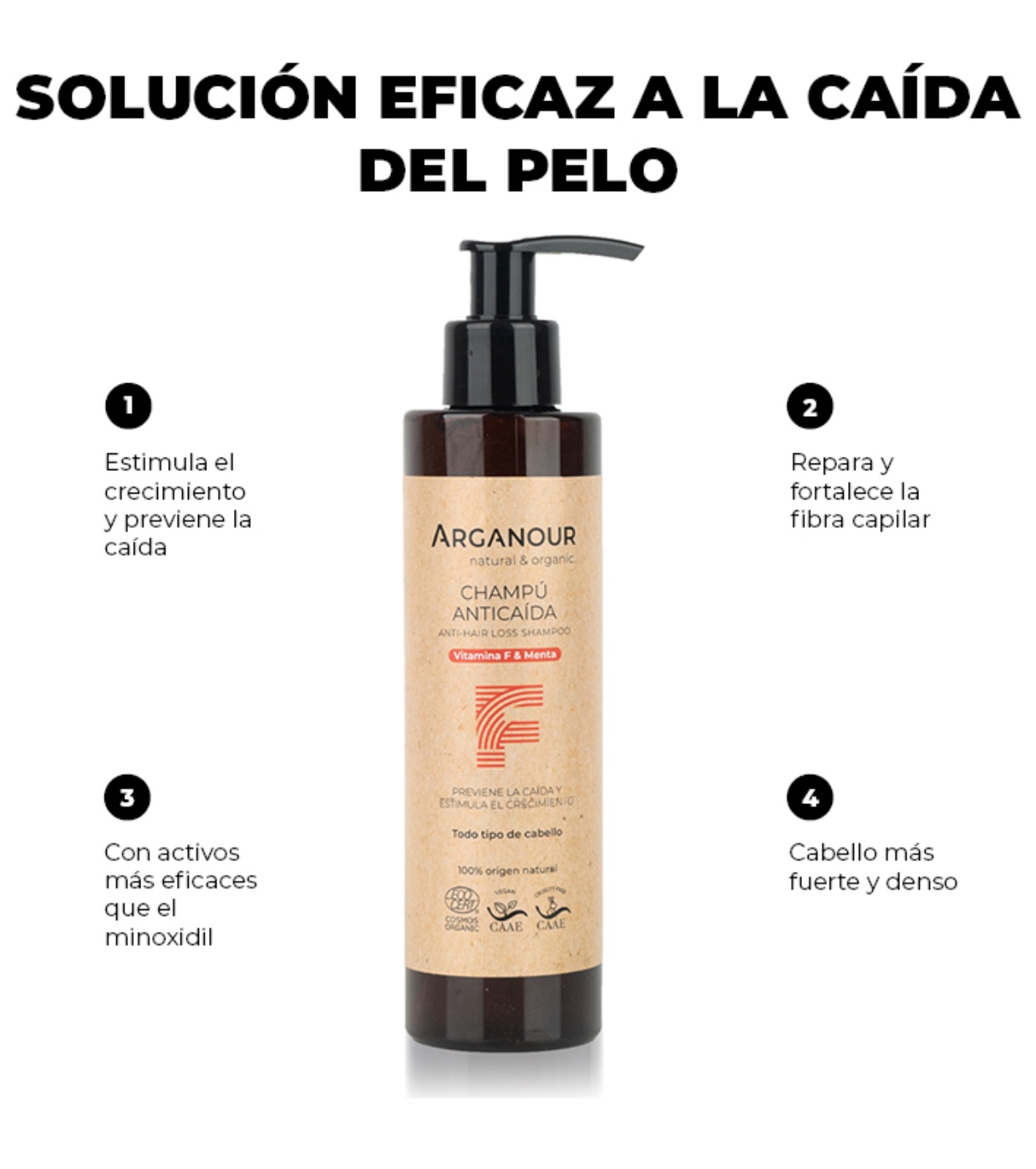 El champú anticaída de Arganour limpia delicadamente el cuero cabelludo y previene la caída del cabello al fortalecer y estimular su crecimiento.