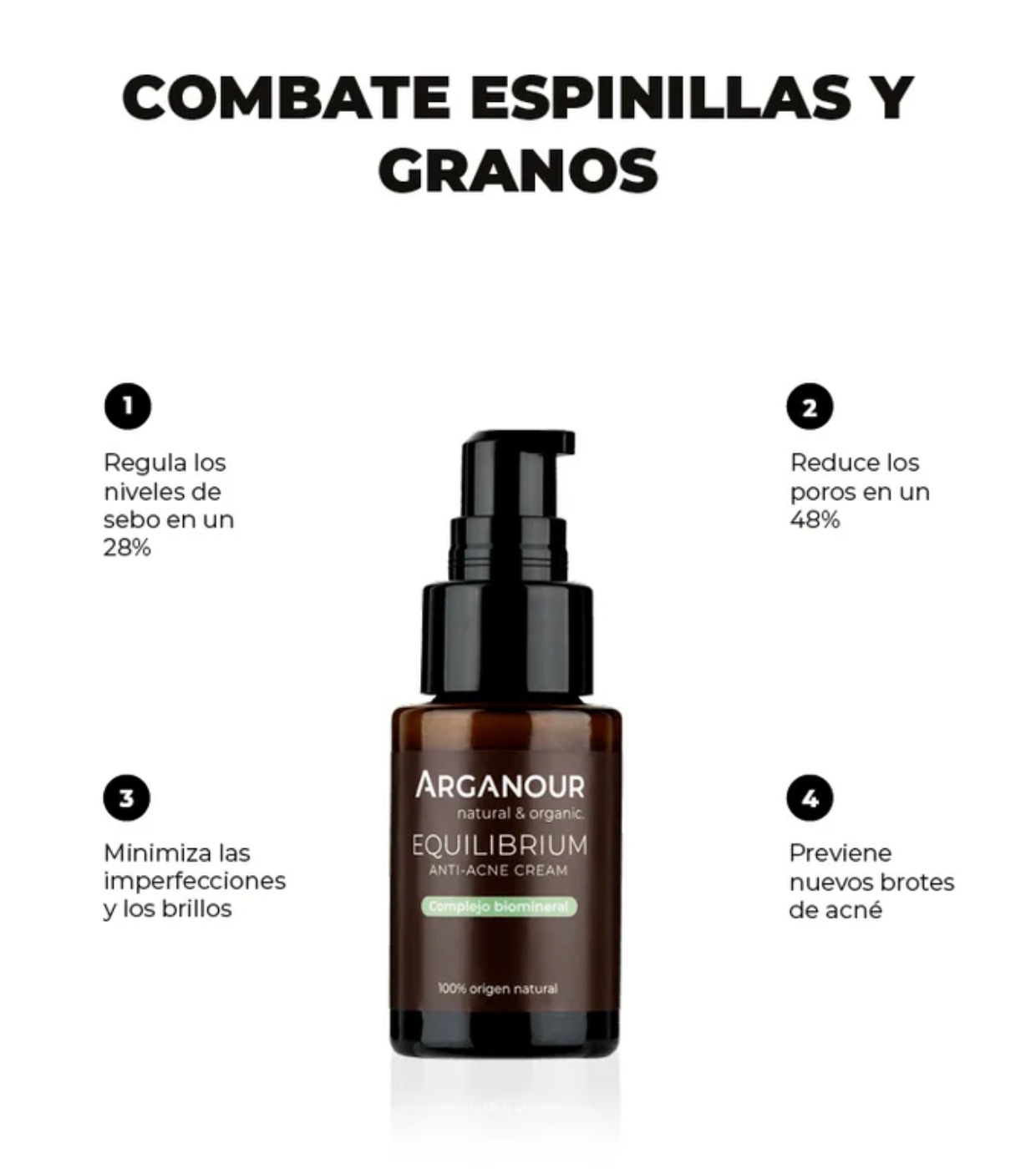La crema para eliminar el acné de rápida eficacia de Arganour ayuda a tratar el acné en adultos y adolescentes gracias a sus activos 100% natural.