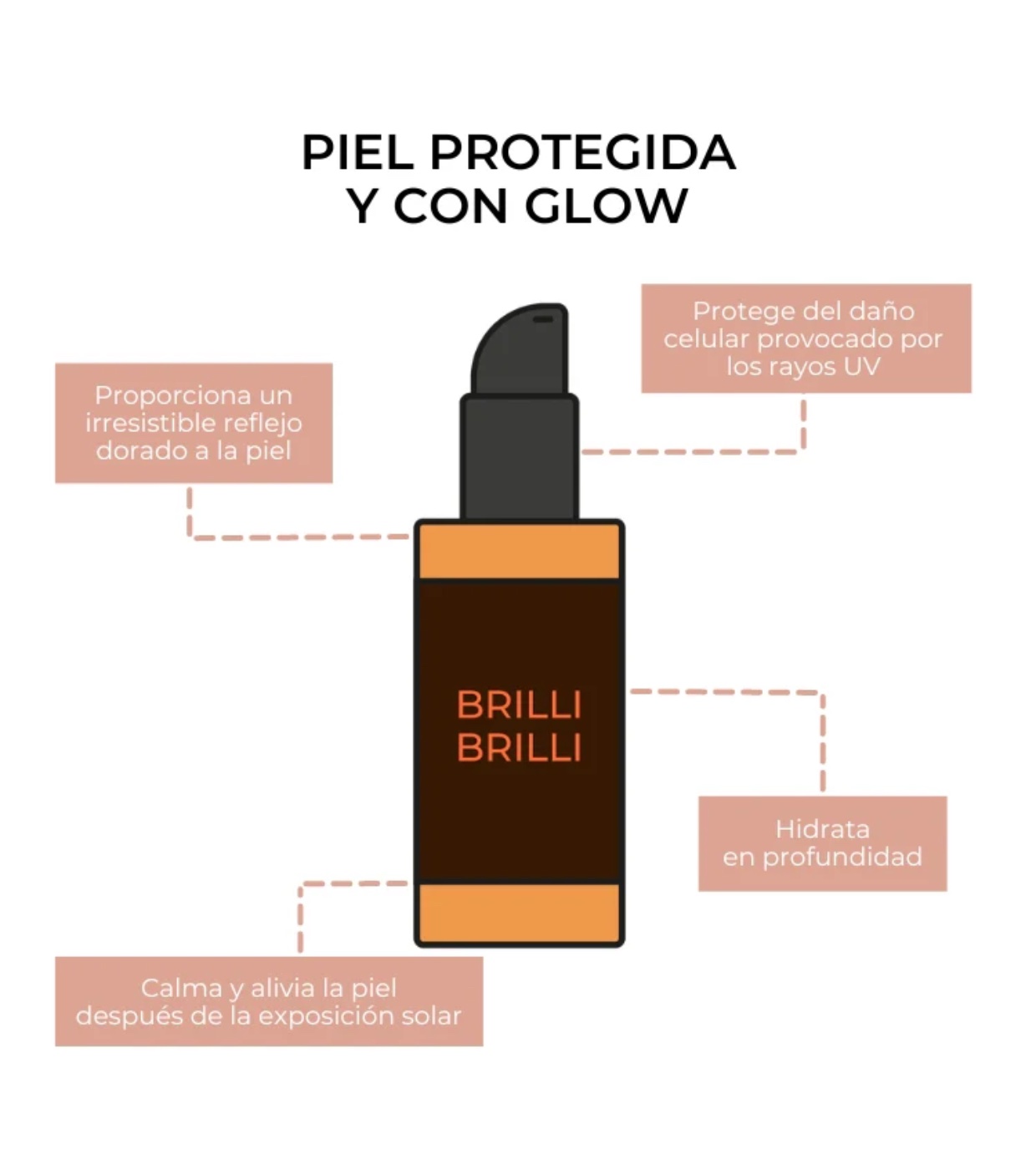 Brilli Brilli es un aceite iluminador corporal que nace para mejorar y potenciar la apariencia y el estado de la piel.