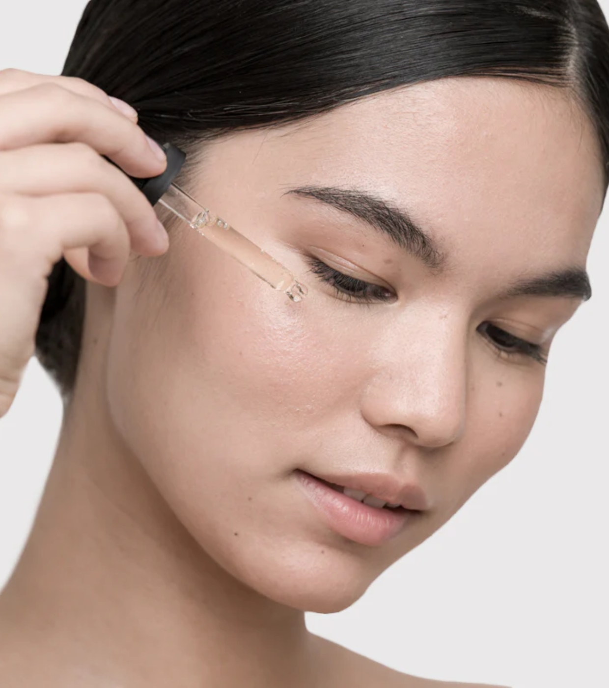 Después de limpiar y tonificar la piel, deposita un par de gotitas de sérum en la yema de los dedos y caliéntalo con las manos.