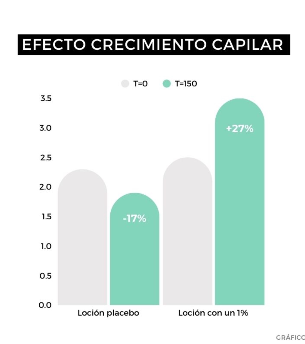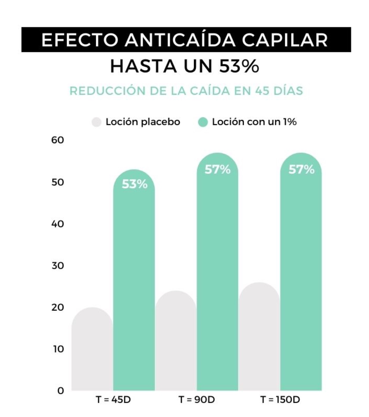 Mejora la calidad y densidad del cabello retrasando su caída gracias a su efecto anticaída, que reduce un 53% la caída del cabello a los 45 días y su efecto regenerador, aumentando la densidad capilar hasta un 52% en 150 días.