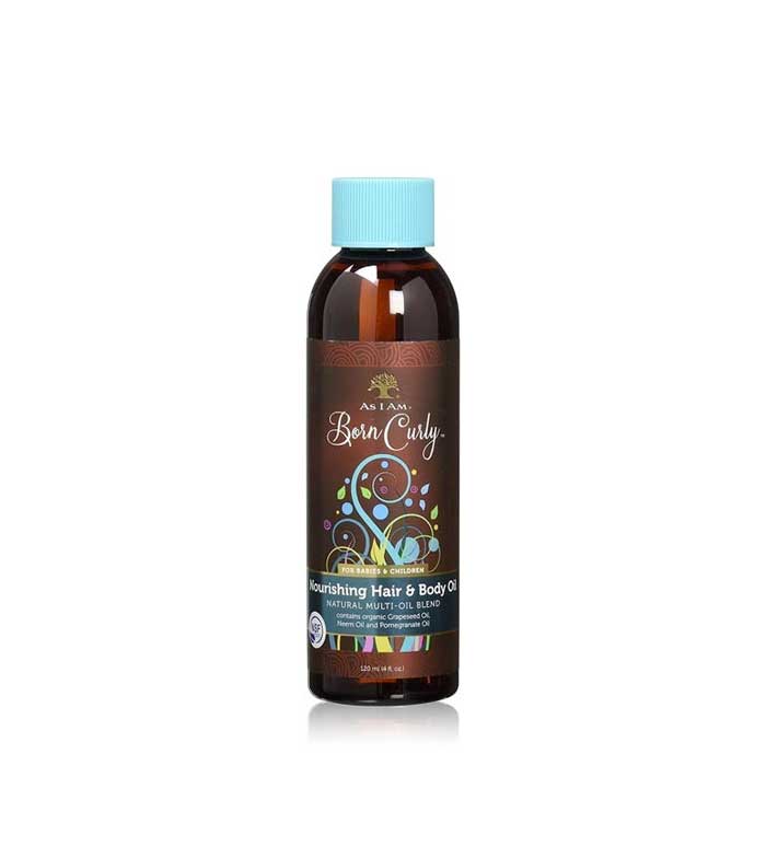 Este aceite nutritivo está pensado para cabellos rizados, y también es ideal para nutrir la piel.