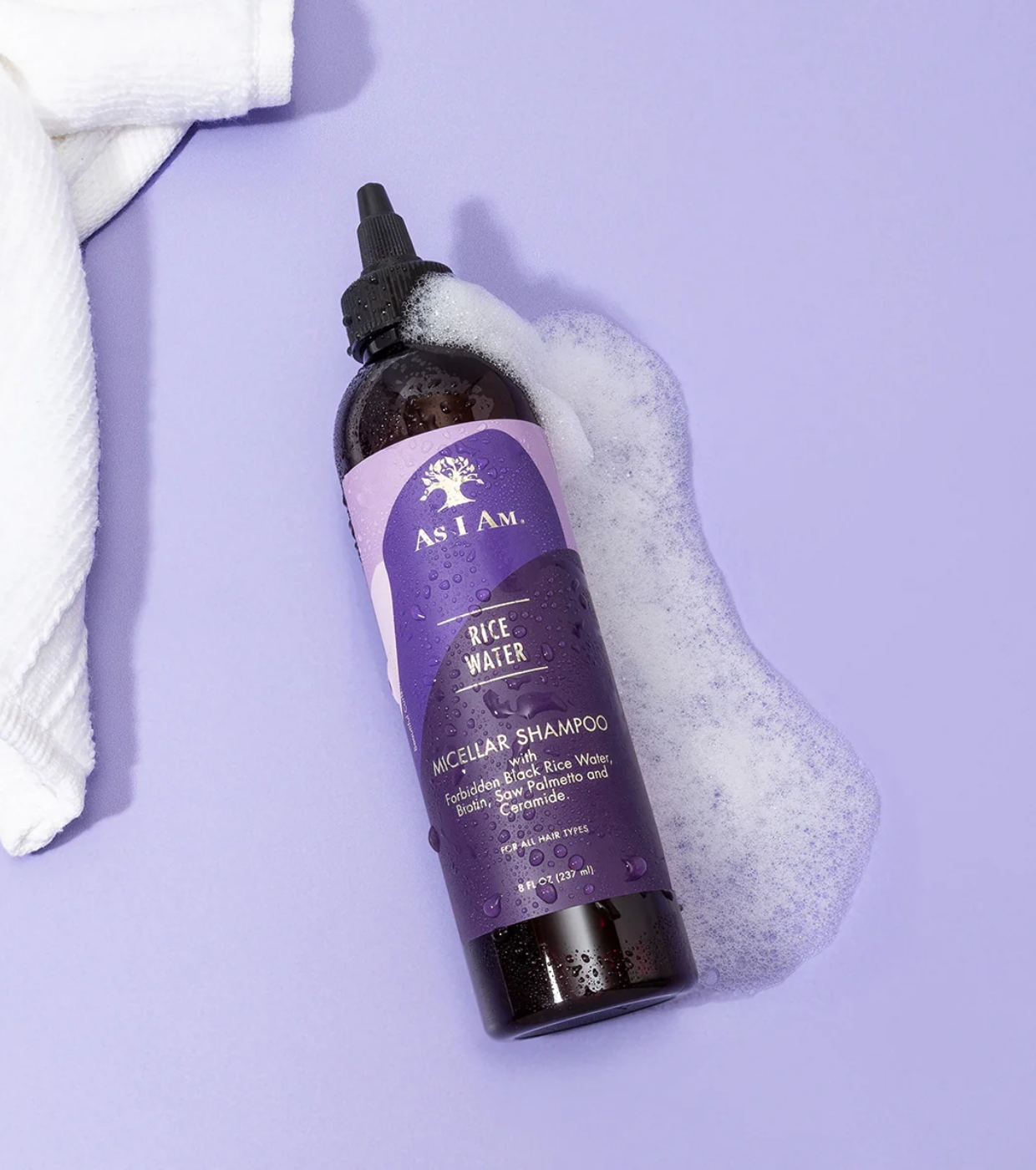 Descubre el Champú micelar hidratante Rice Water de As I Am, un champú innovador que combina limpieza e hidratación con tecnología avanzada.
