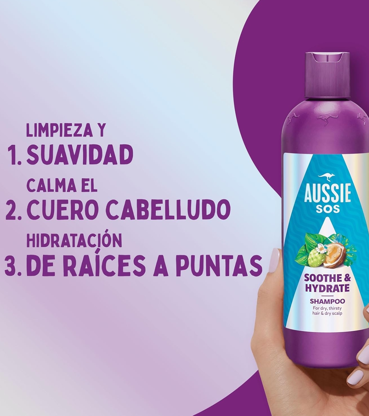 ¿Tu pelo y tu cuero cabelludo secos están pidiendo auxilio? El champú Aussie SOS Soothe & Hydrate es la solución que necesitas.