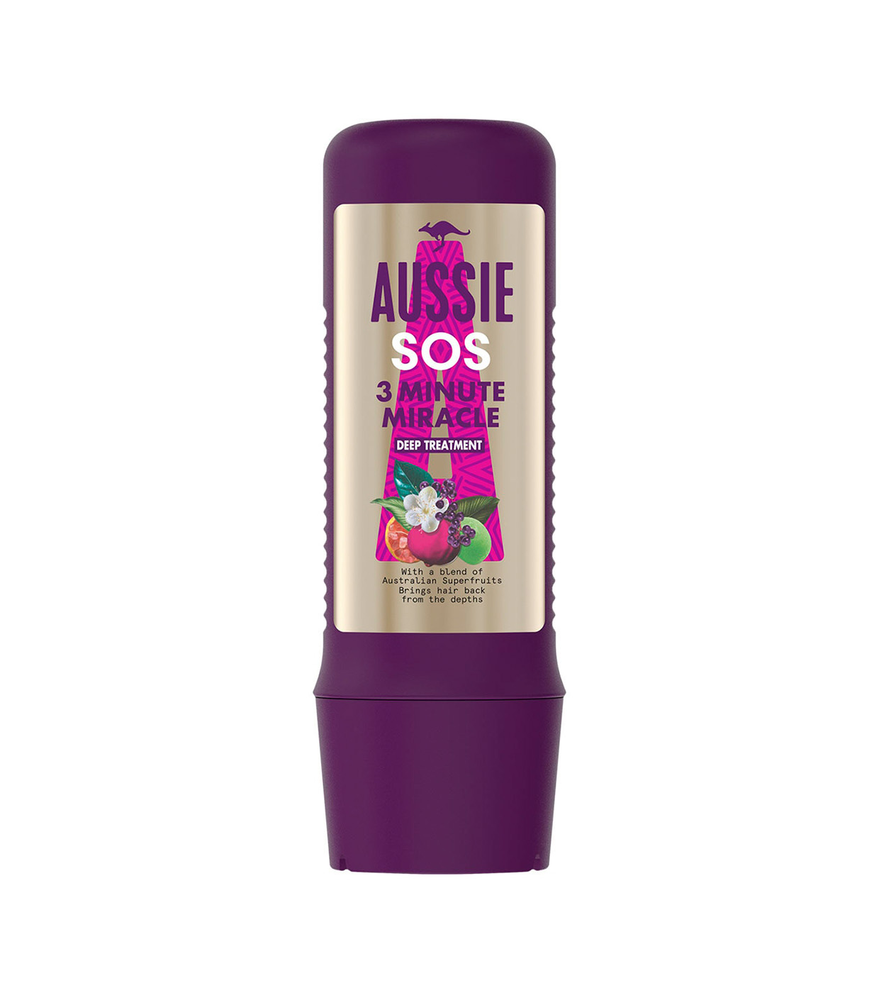 El tratamiento intensivo SOS Deep Repair 3 Minute Miracle de Aussie elaborado con superfrutas australianas es el tratamiento nutritivo del cabello definitivo para los mechones secos, dañados y apagados.