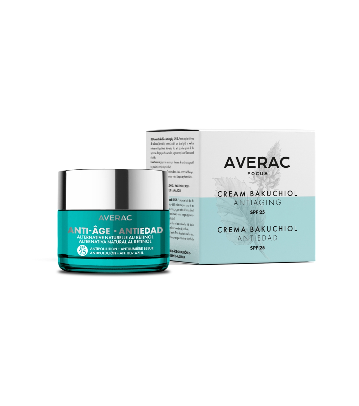 La crema facial antiedad Bakuchiol SPF25 de Averac Cosmetics combina el poder del bakuchiol, la alternativa vegana al retinol, con una protección solar de amplio espectro para ofrecer un tratamiento diario que hidrata, reafirma y previene el envejecimiento prematuro.
