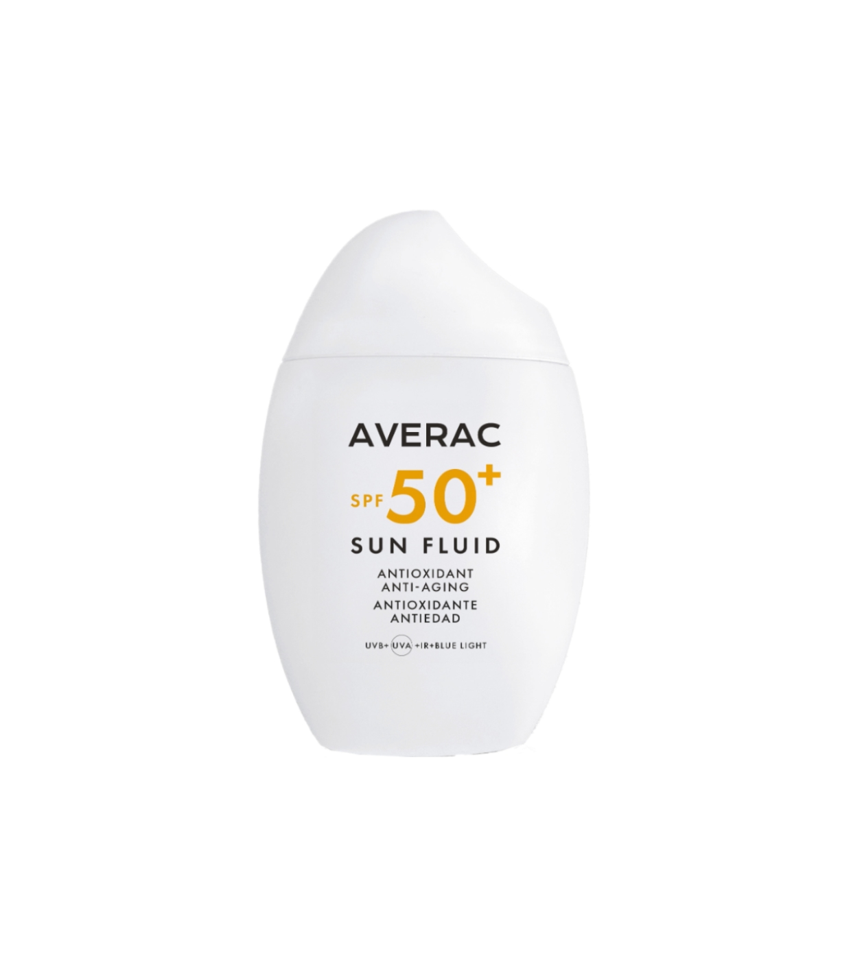 El Averac Sun Fluid SPF50 es un fluido solar facial antioxidante y antiedad diseñado para proteger la piel frente a los rayos UVA, UVB, infrarrojos y la luz azul.
