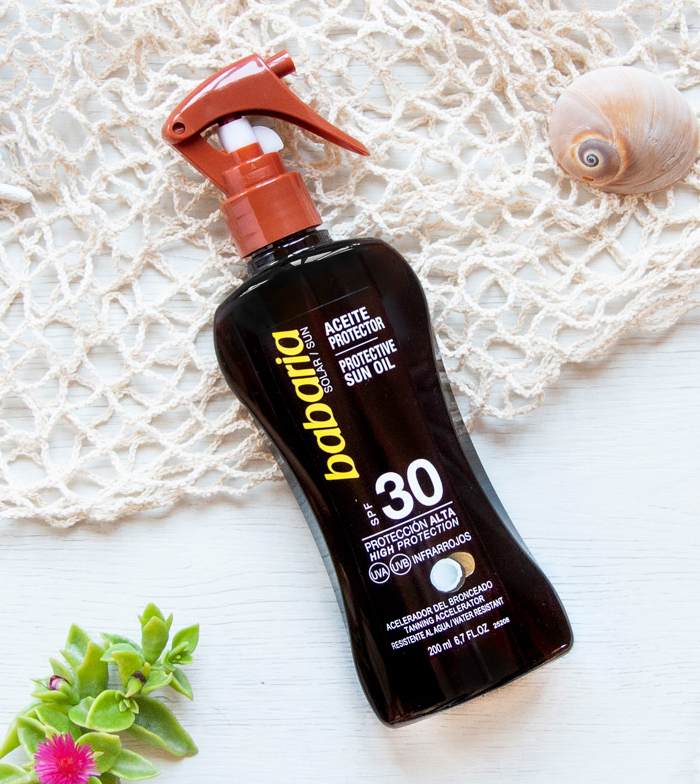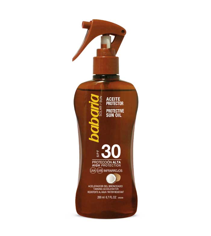 Aceite bronceador solar en spray de coco SPF30 de Babaria.