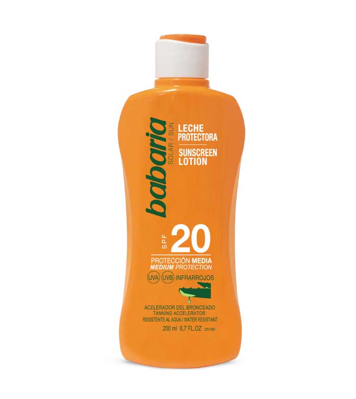 Leche corporal de protección solar Aloe Vera SPF20 de Babaria.