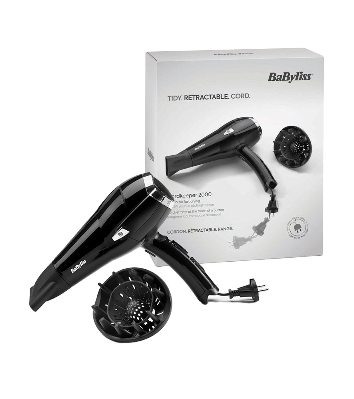 Experimenta la revolución en secadores de cabello con Babyliss Cordkeeper retráctil 2000, una obra maestra de la ingeniería que combina innovación y comodidad para elevar tu experiencia de secado a nuevos niveles.