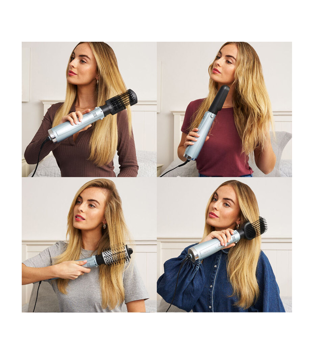 Cuenta con 4 accesorios intercambiables para secar, alisar, enderezar y añadir volumen y forma.