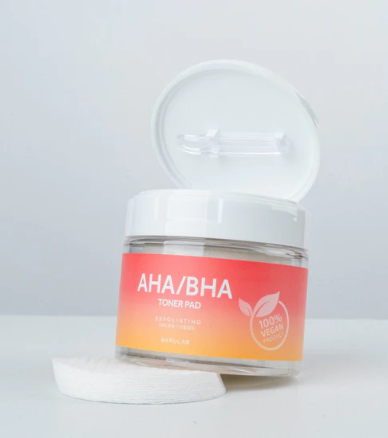 The Clean Vegan Toner Pad AHA/BHA de Barulab es una solución exfoliante suave y eficaz en formato de discos impregnados que mejora la textura, la luminosidad y la claridad de la piel desde la primera aplicación.