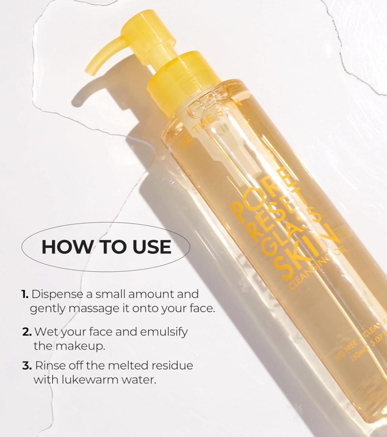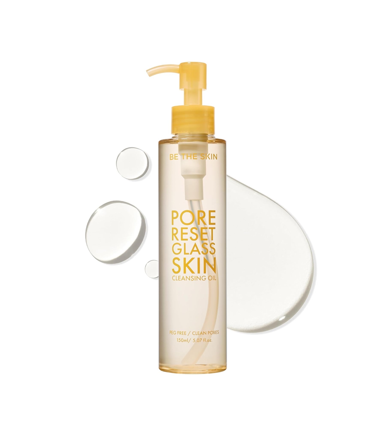 El Pore Reset Glass Skin Cleansing Oil de Be The Skin es un aceite limpiador ligero y nutritivo que elimina en profundidad maquillaje, protector solar e impurezas, mientras aporta luminosidad y frescura a la piel.